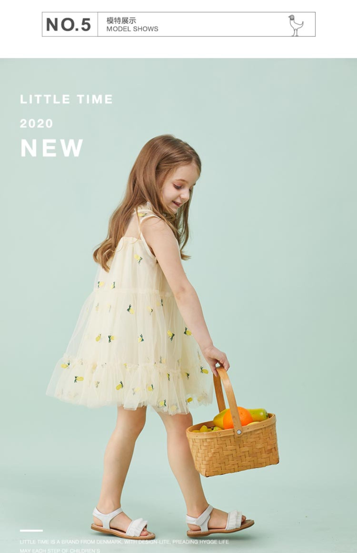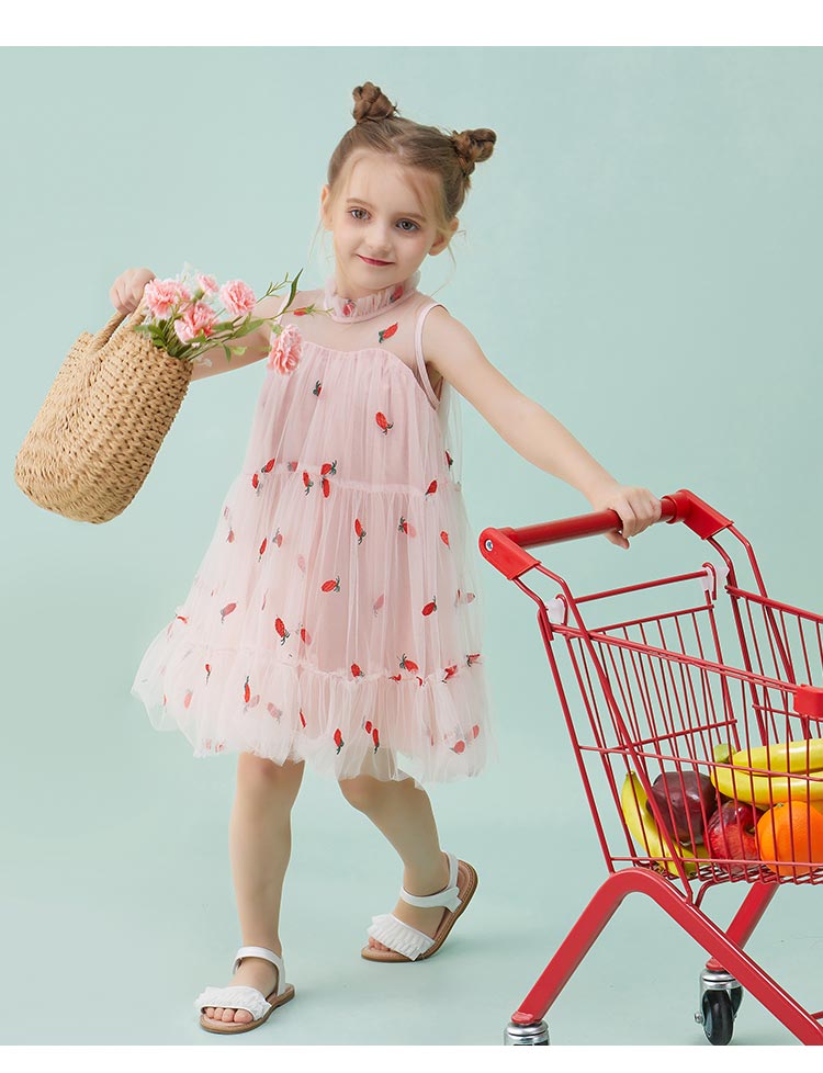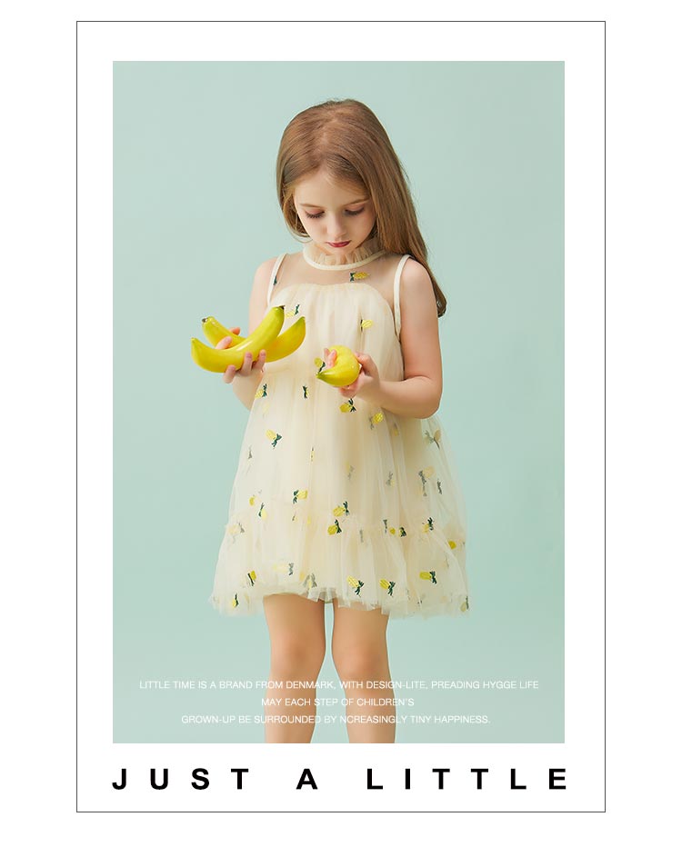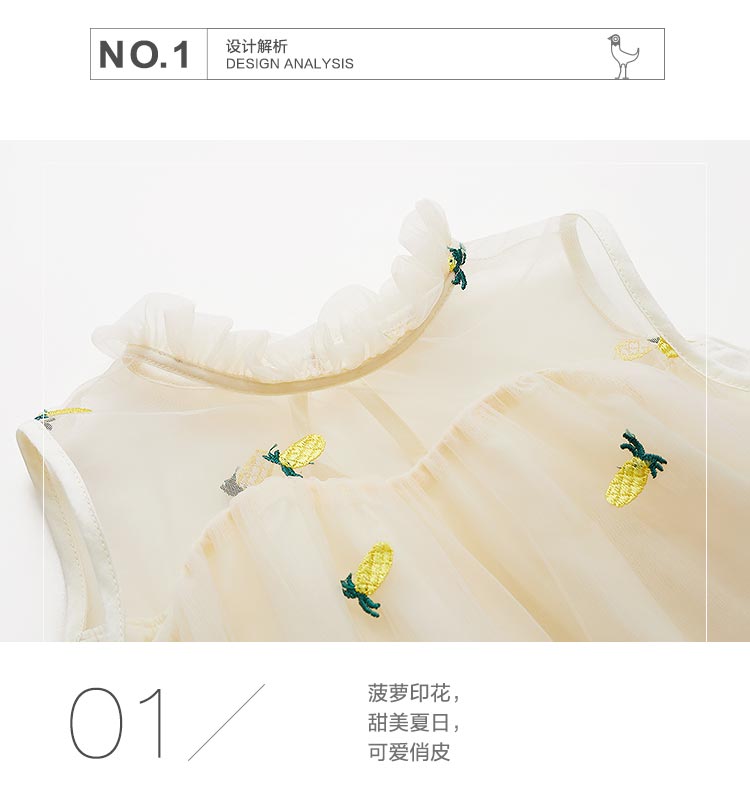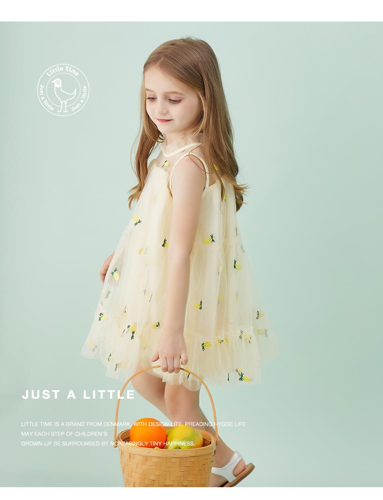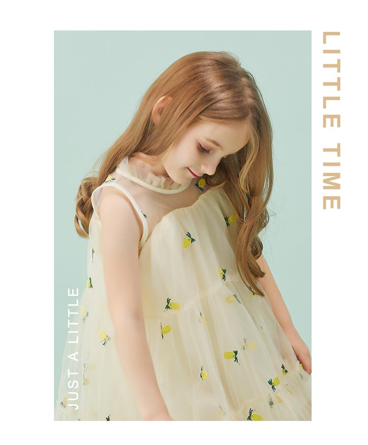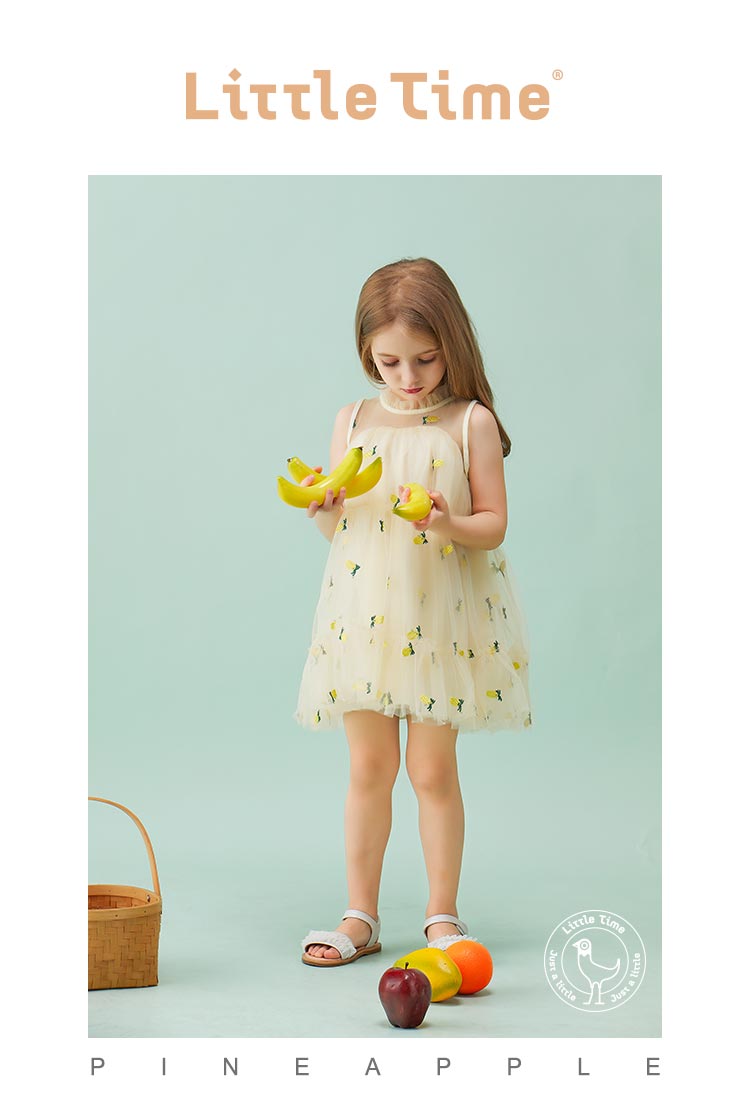 littletime童装2020夏季新品菠萝无袖连衣裙洋气女童无袖网纱裙