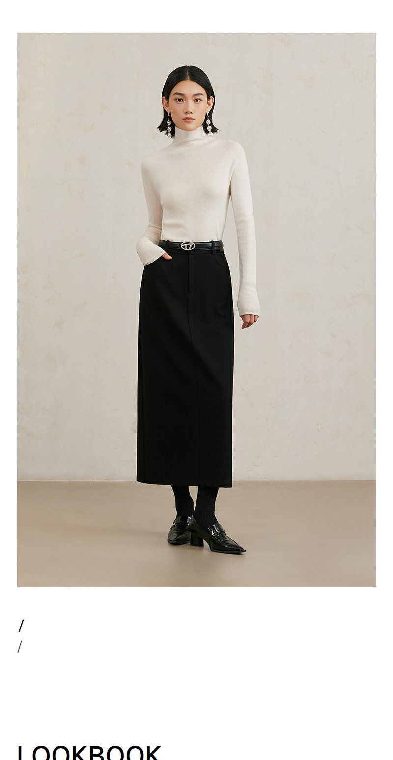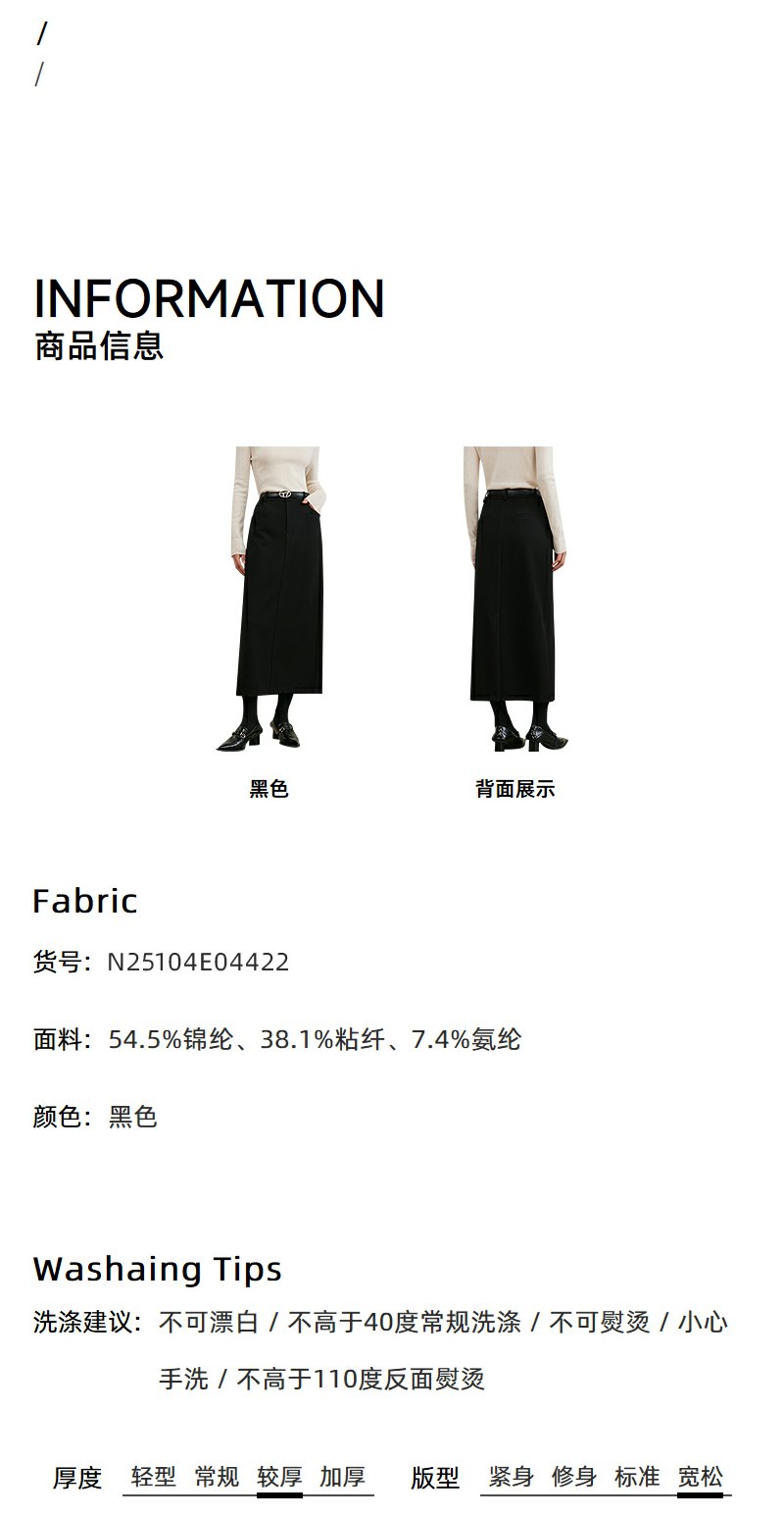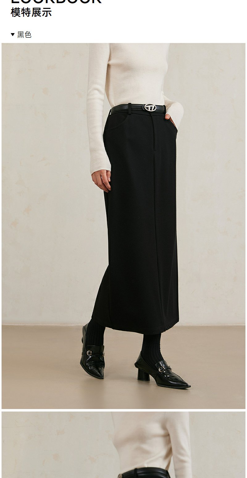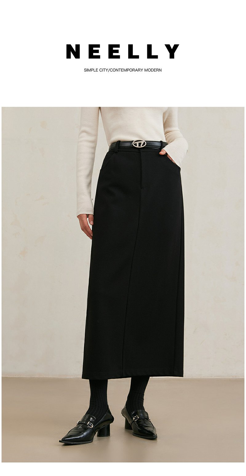 NEELLY纳俪商场同款冬季新款黑色垂感显瘦半身裙女气质通勤长裙N25104E04422