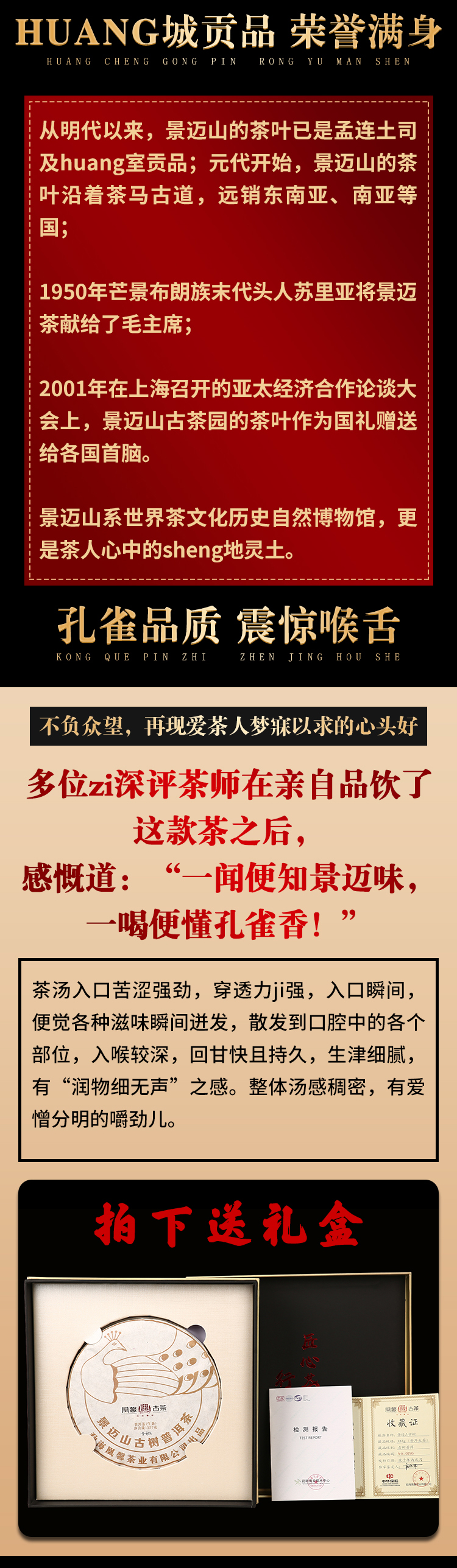 凰馨古茶【景迈山礼盒装】2020头春普洱生茶300年古树357g
