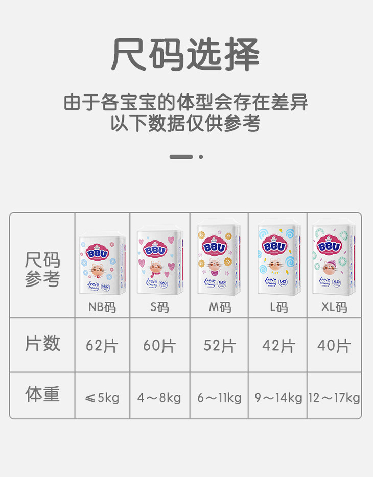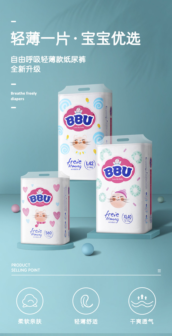 德国BBU自由呼吸系列轻薄款纸尿裤/拉拉裤所有尺码