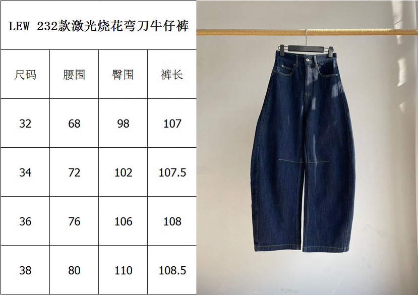 17-1 现货发 渠道圆正 lew 25早春 激光烧花 弯月镰刀牛仔裤 气球廓形牛仔裤 显腰细