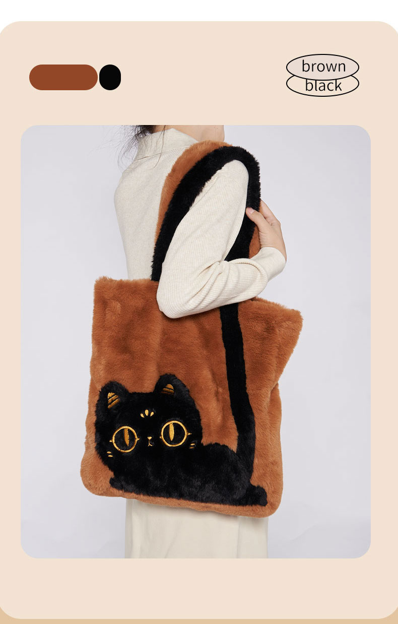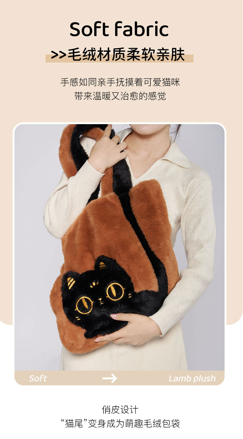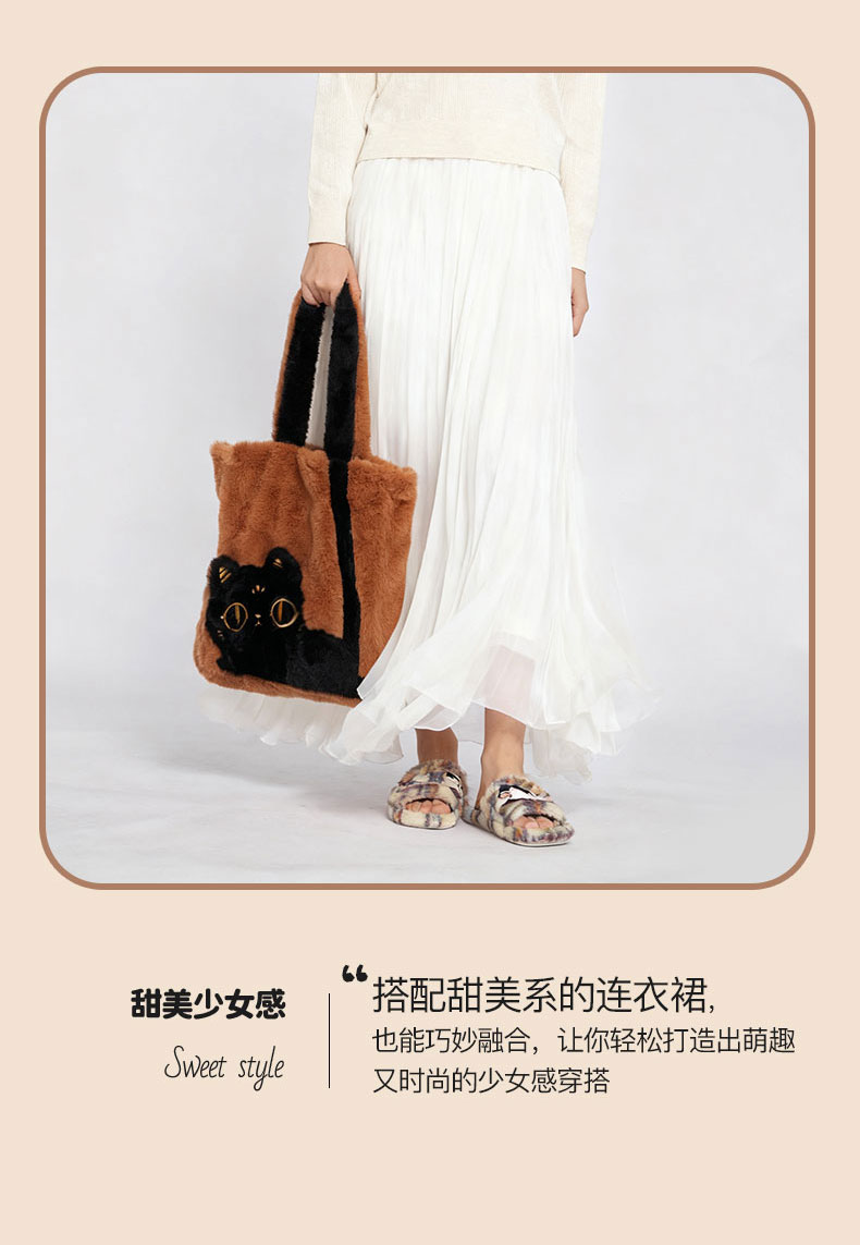 大英博物馆 巴斯特系列 毛绒趴趴猫撞色 单肩包 咖色