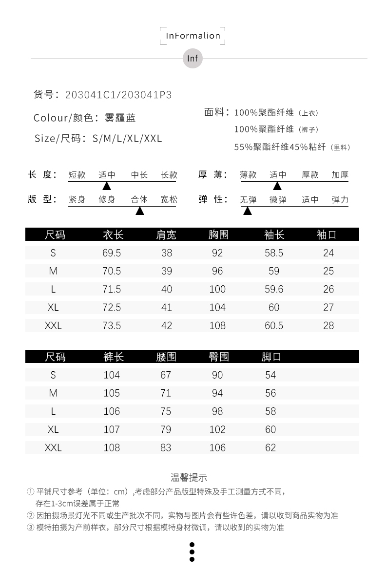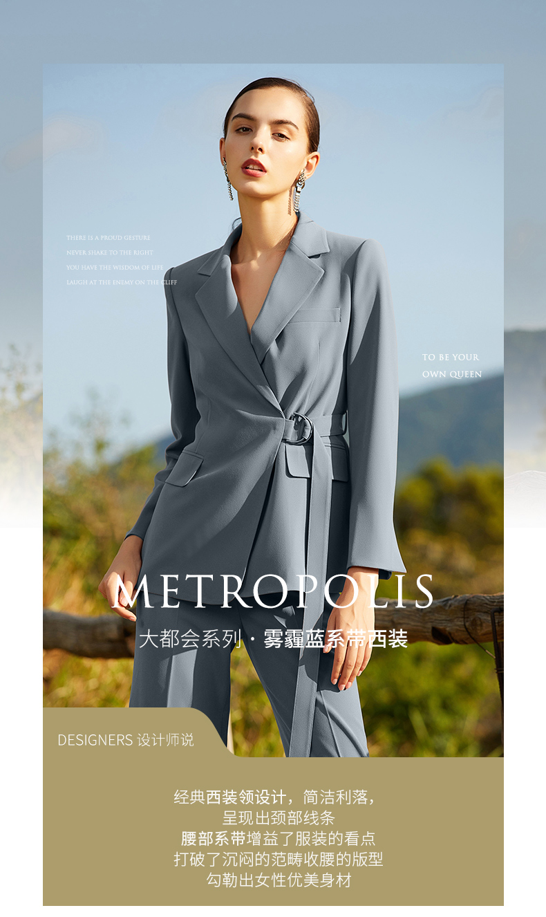 IWY/雾霾蓝色长袖西装长裤套装203041C1+P3