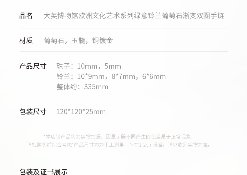 大英博物馆 欧洲文化艺术系列 绿意铃兰葡萄石渐变 双圈手链