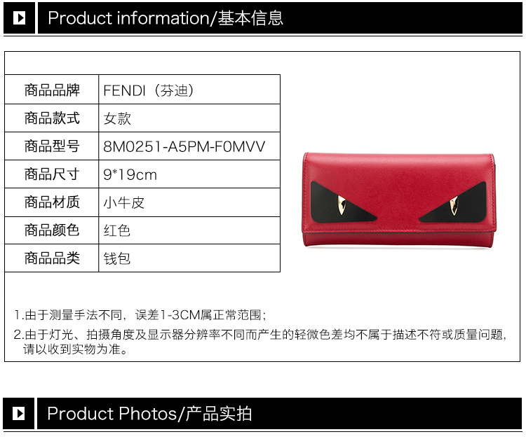 Fendi 芬迪 红色女士钱包 8M0251-A5PM-F0MVV