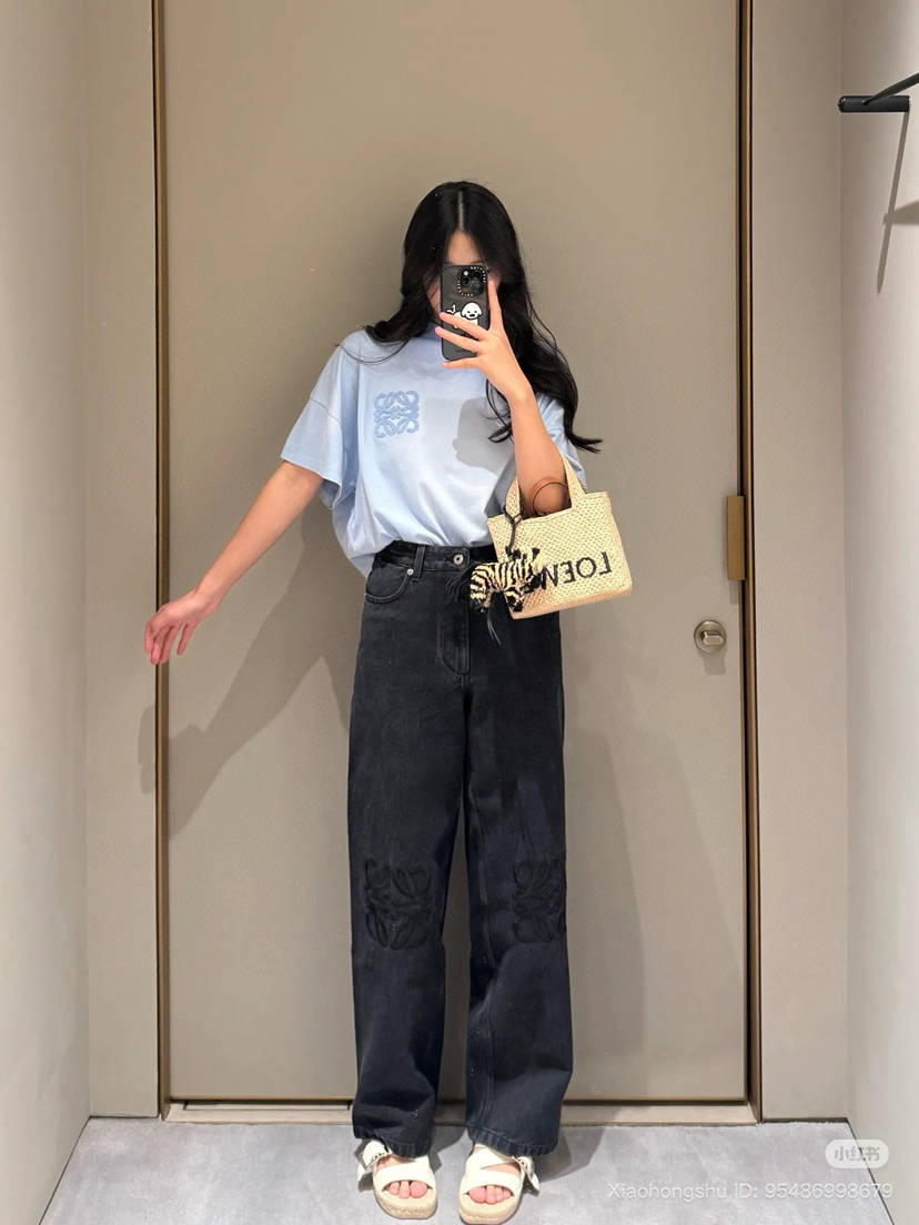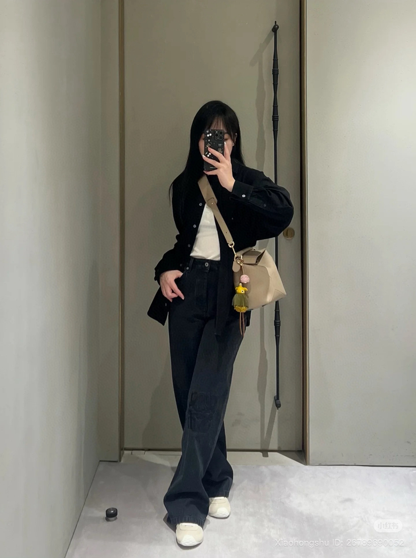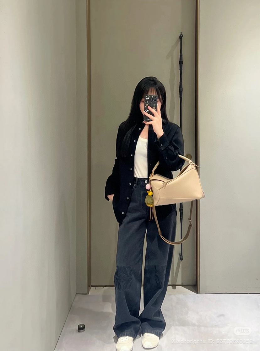 Lew膝盖刺绣的牛仔裤有很多条,这是我最爱的一条。版型看着平平无奇,就是格外显瘦,藏肚子肉肉,显腰细,我的大象粗腿,也会显的正常。而且不是夸张裤长,比较的日常,穿个厚底鞋完全的OK