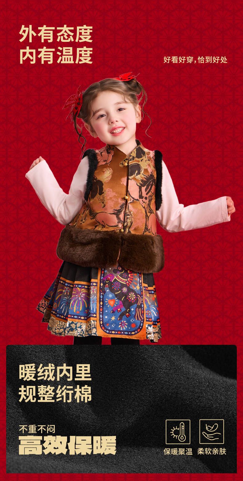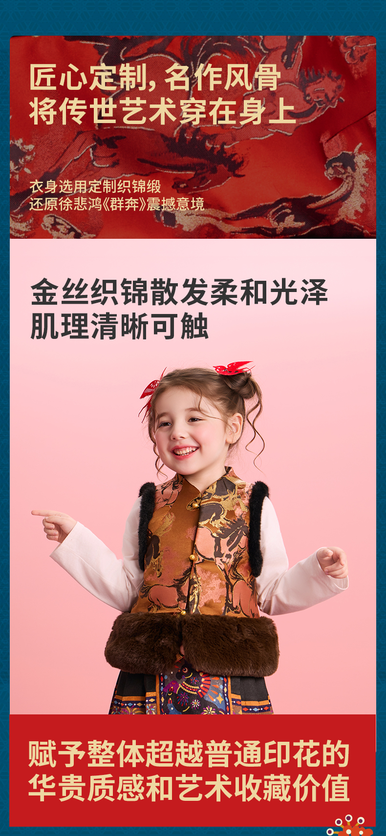 徐悲鸿联名年衣童装新中式唐装马甲亲子装冬儿童大展鸿图中式马甲