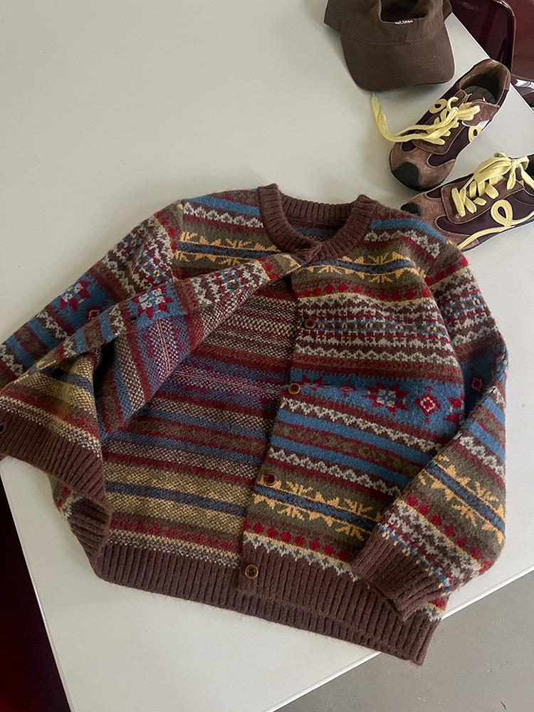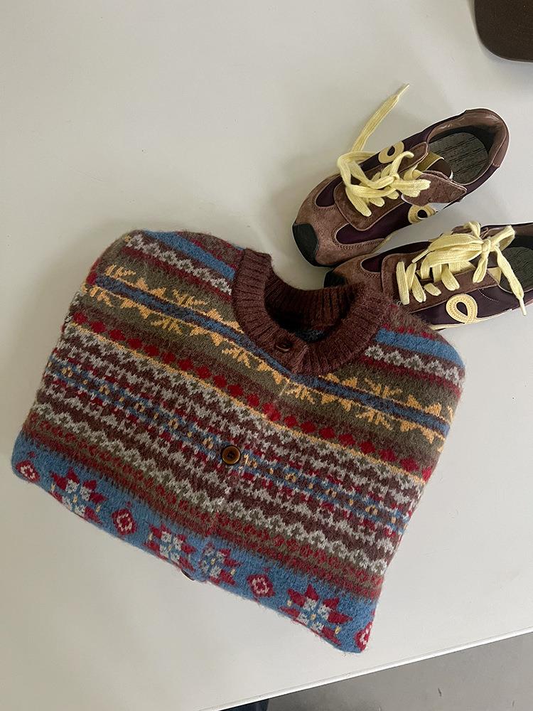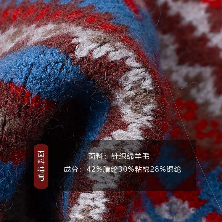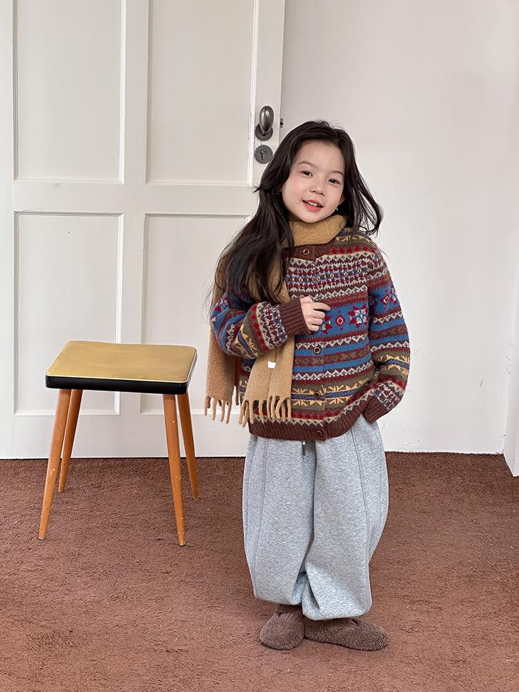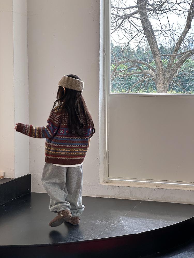艾摩贝贝童装2025冬季女童复古浪漫费尔岛毛衣提花绵羊毛针织外套