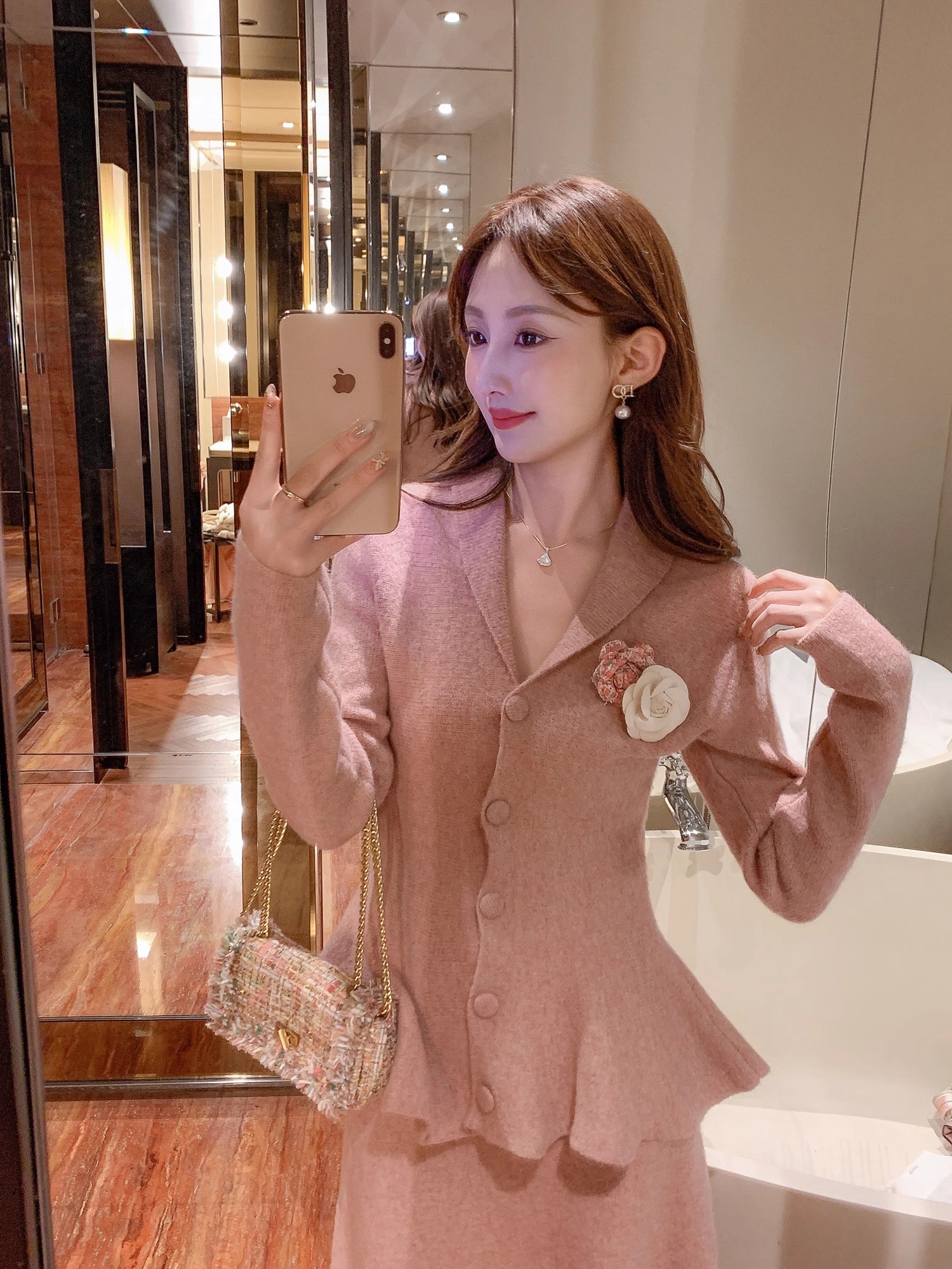 张心子【午后花园】法式立体花气质秋款长袖女新款显瘦百搭针织衫 U2508010