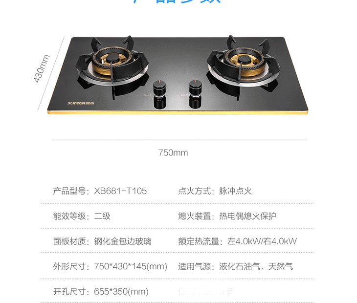 cdfh917pfj鑫奇XB681-T105-XT台嵌两用燃气灶(熄保天然气)