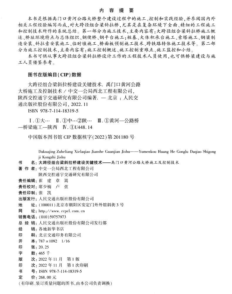 书名:大跨径组合梁斜拉桥建设关键技术——禹门口黄河公路大桥施工及控制技术