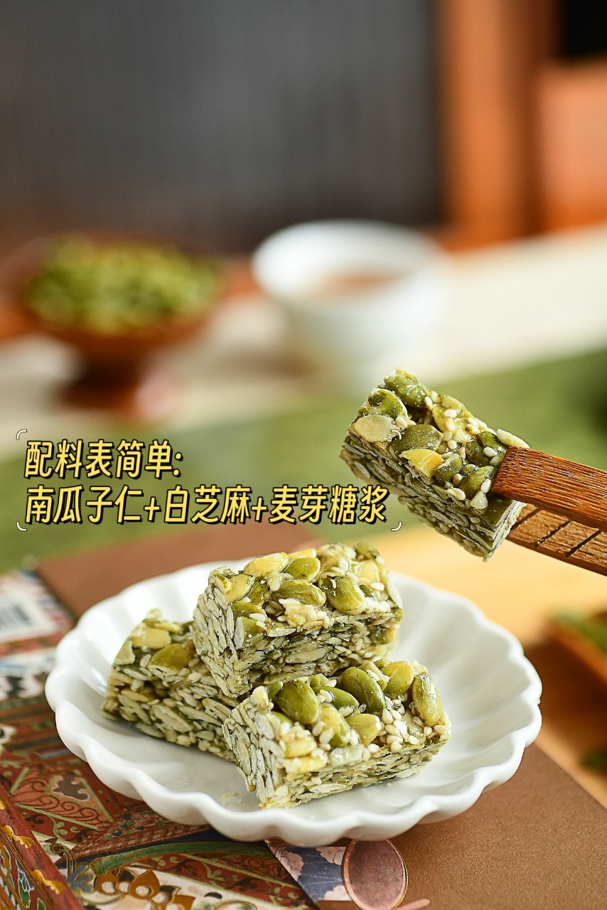 【配料表】:80%南瓜子+15%麦芽糖+5%白芝麻
