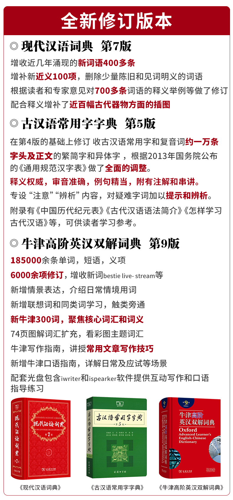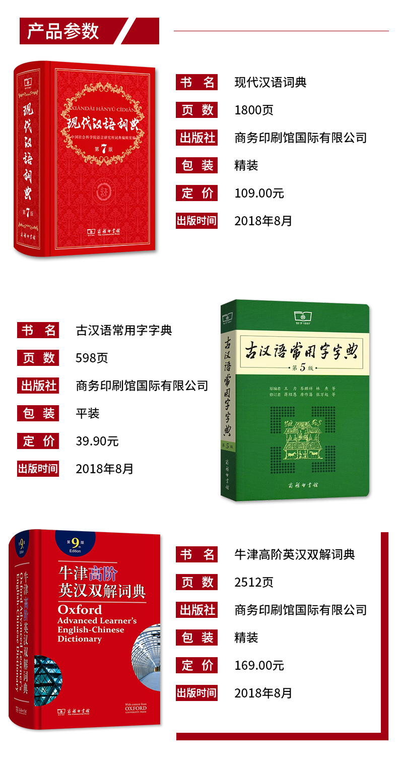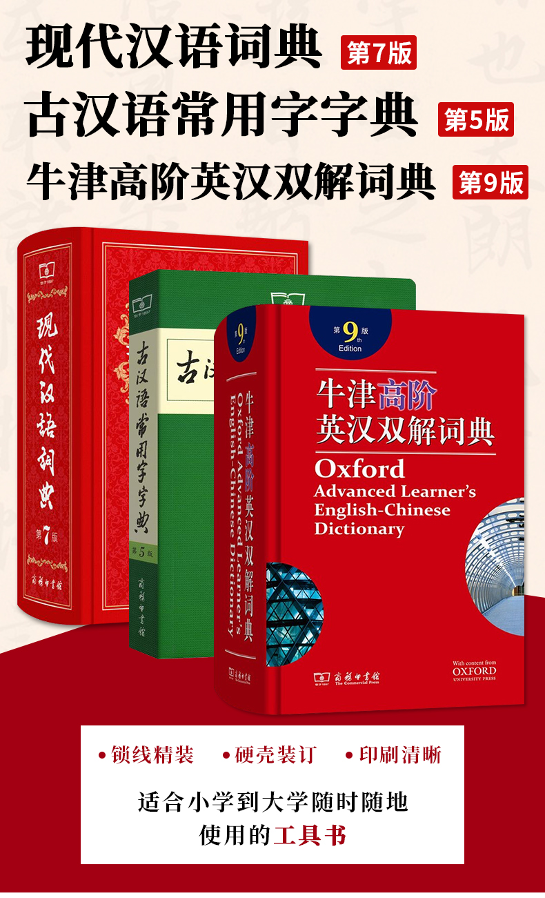 现代汉语词典第7版牛津高阶英汉双解词典第9版古汉语常用字字典第5版商务印书馆出版社最新版七九二中小学生工具书字典英语高中
