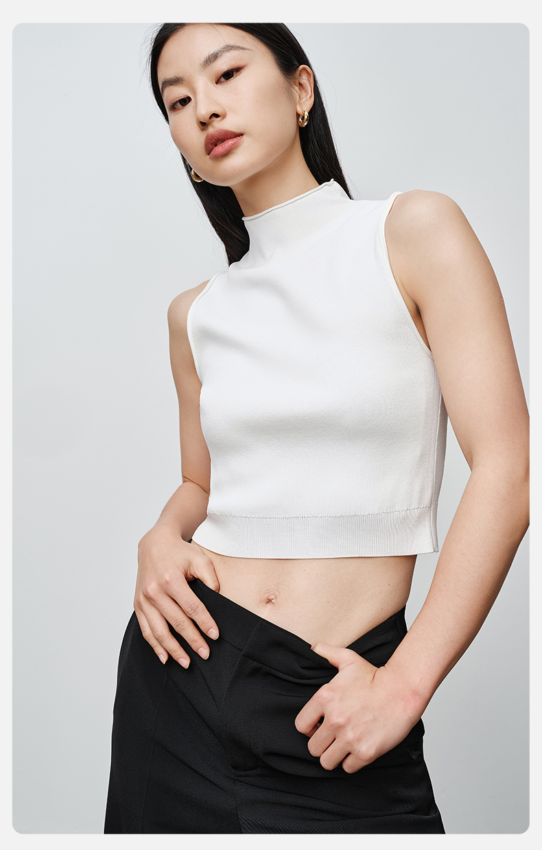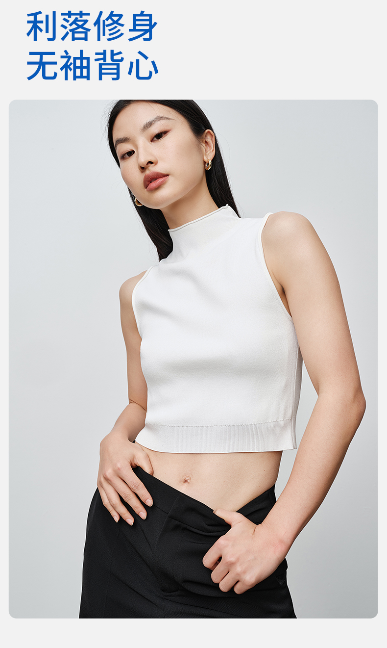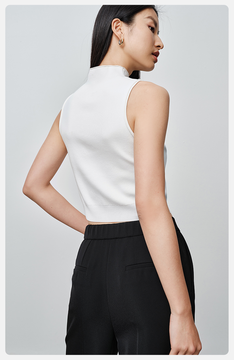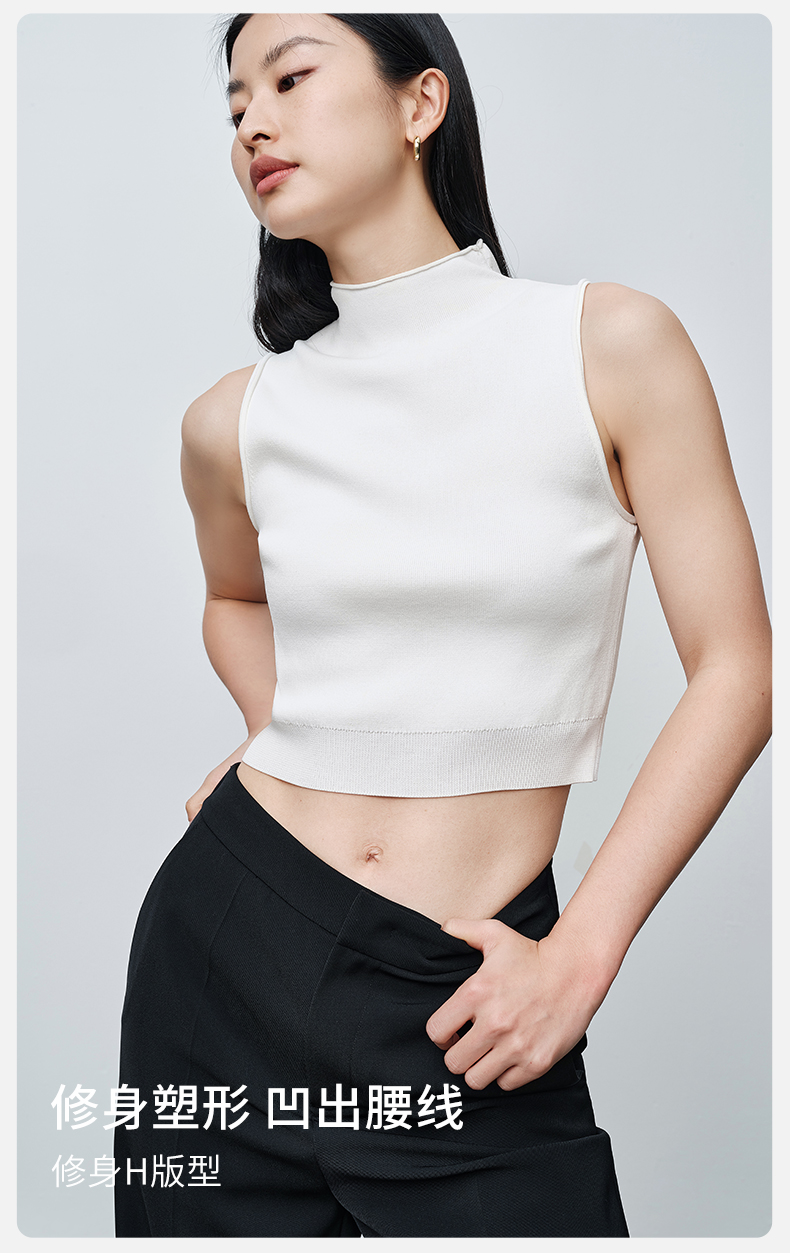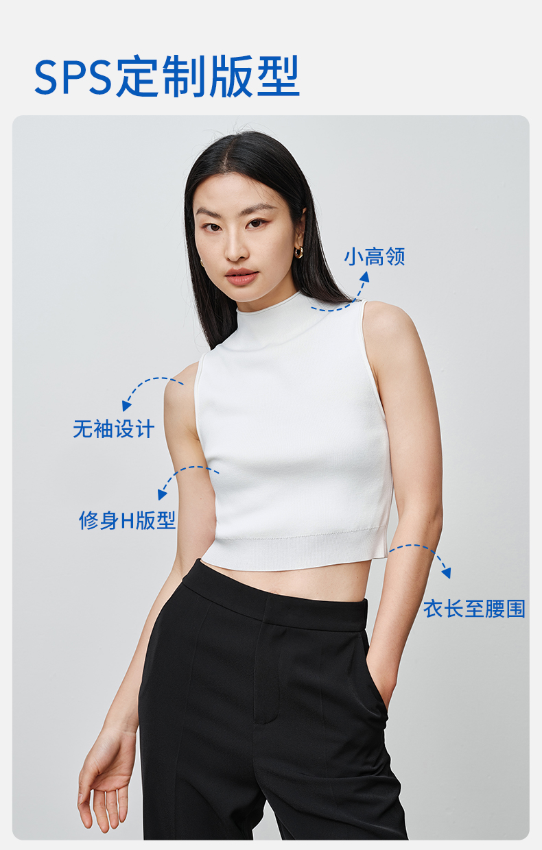 simplepieces春季款SPS毛织女高领修身短款无袖背心