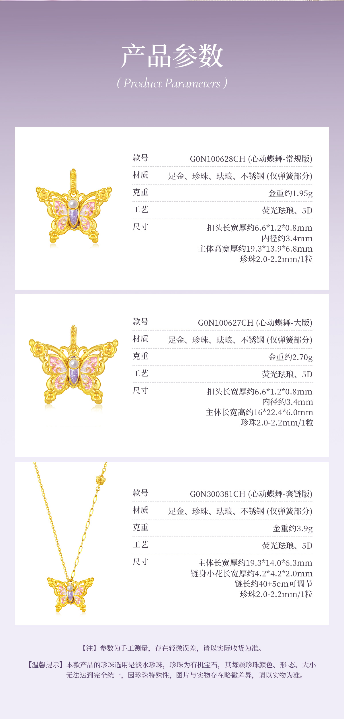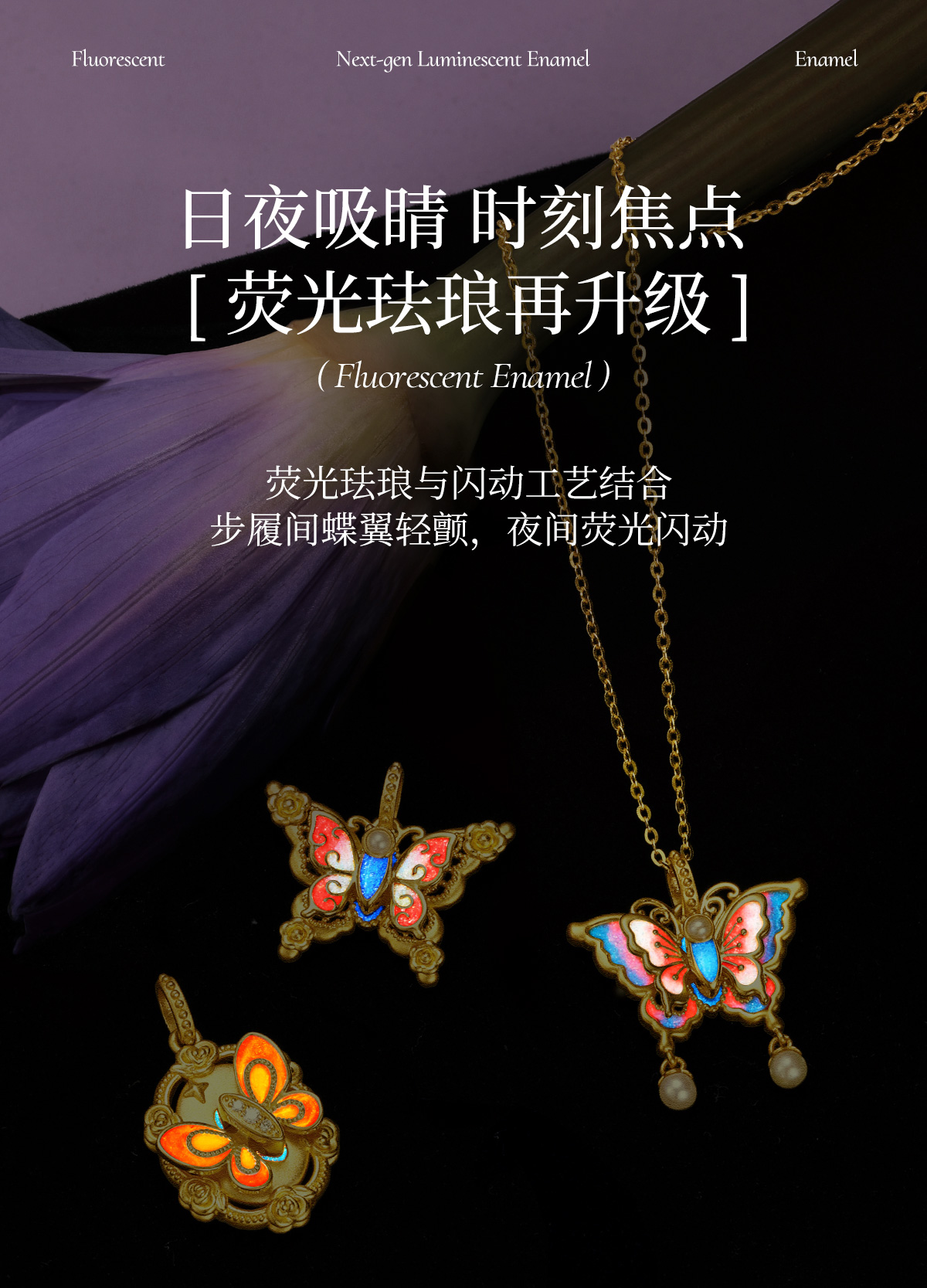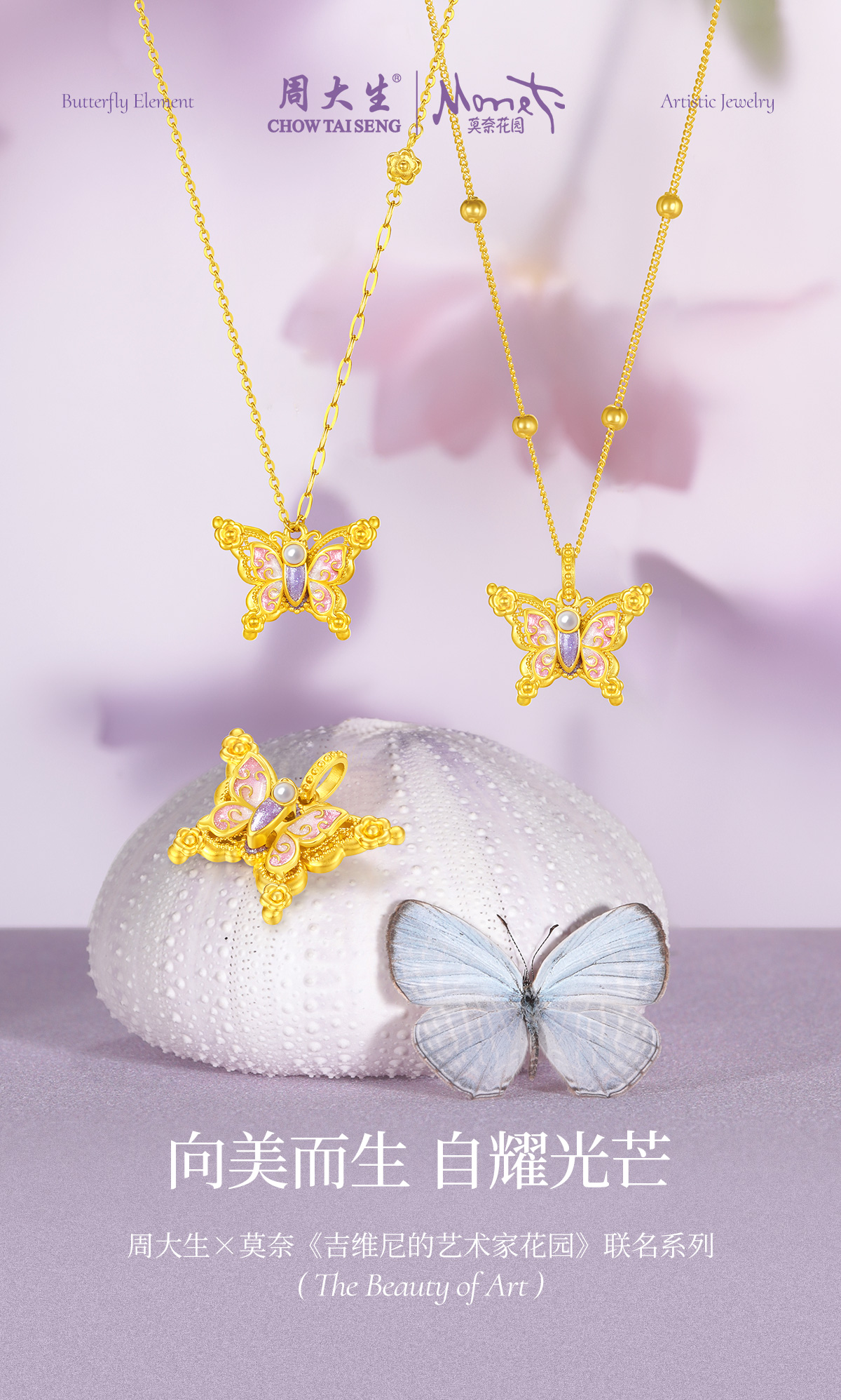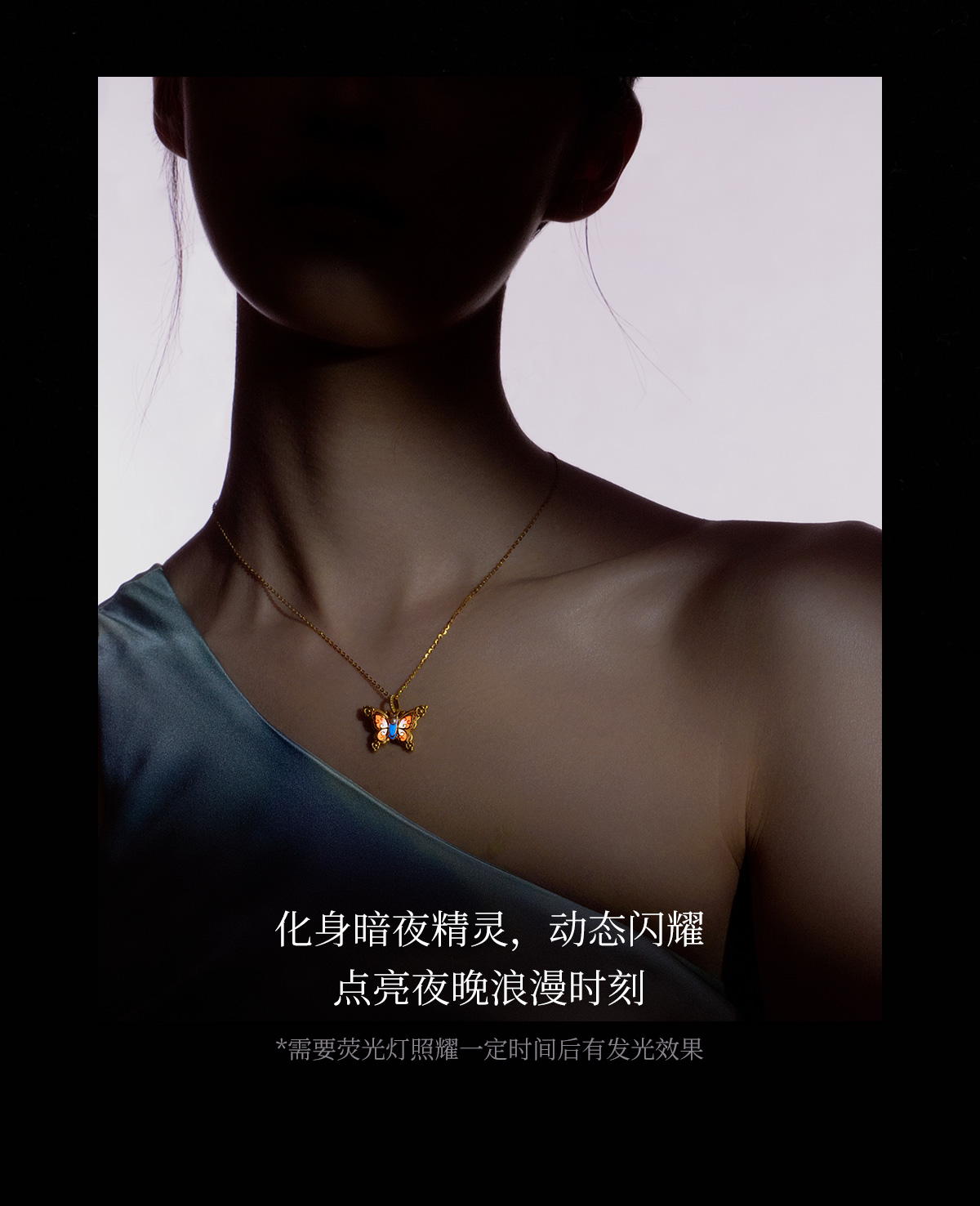 【无忧之夜同款】莫奈心动蝶舞周大生黄金项链吊坠足金莫奈花园系列荧光珐琅闪光蝴蝶挂坠七夕礼物送女友赠莫奈礼盒赠荧光灯