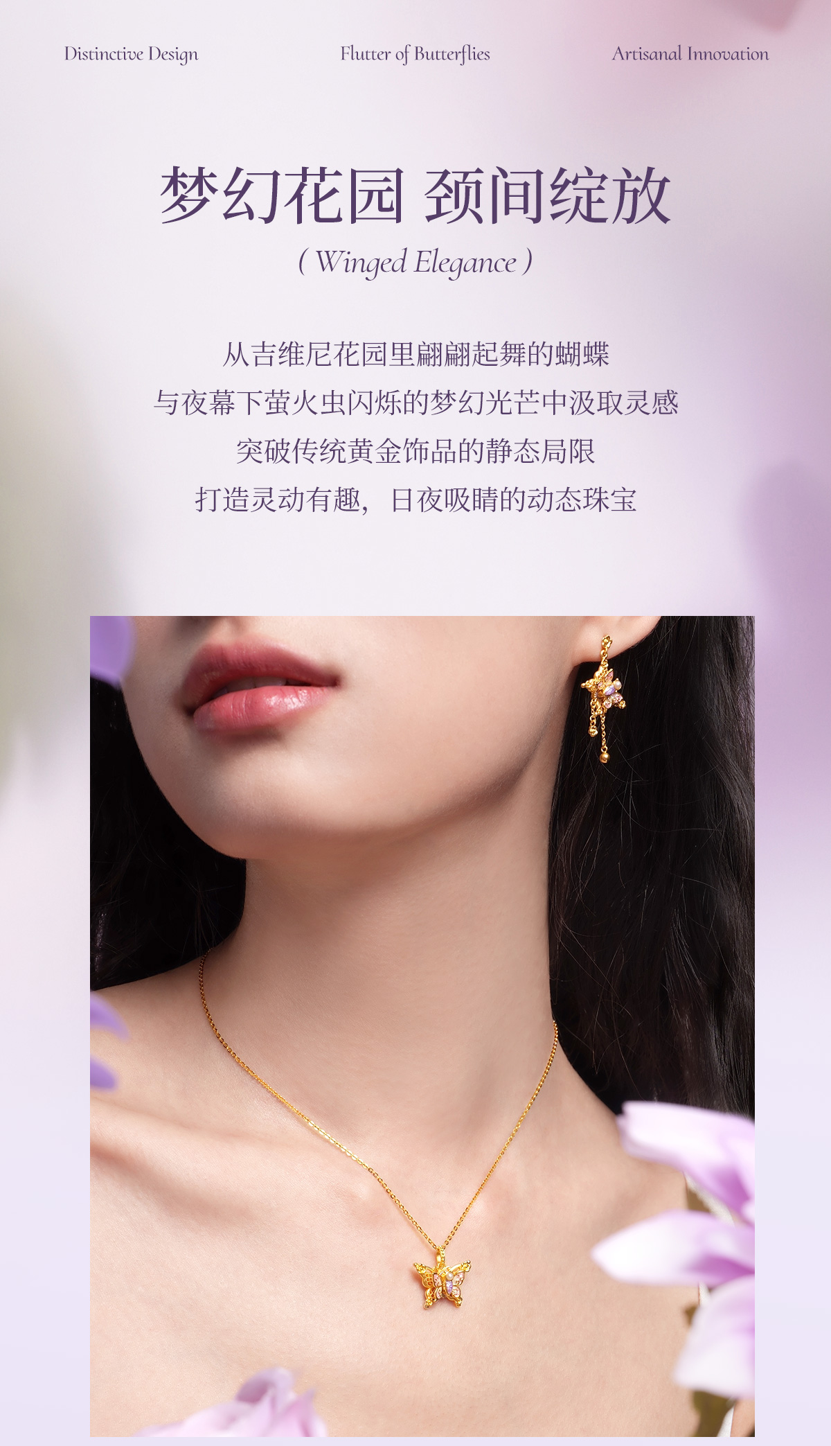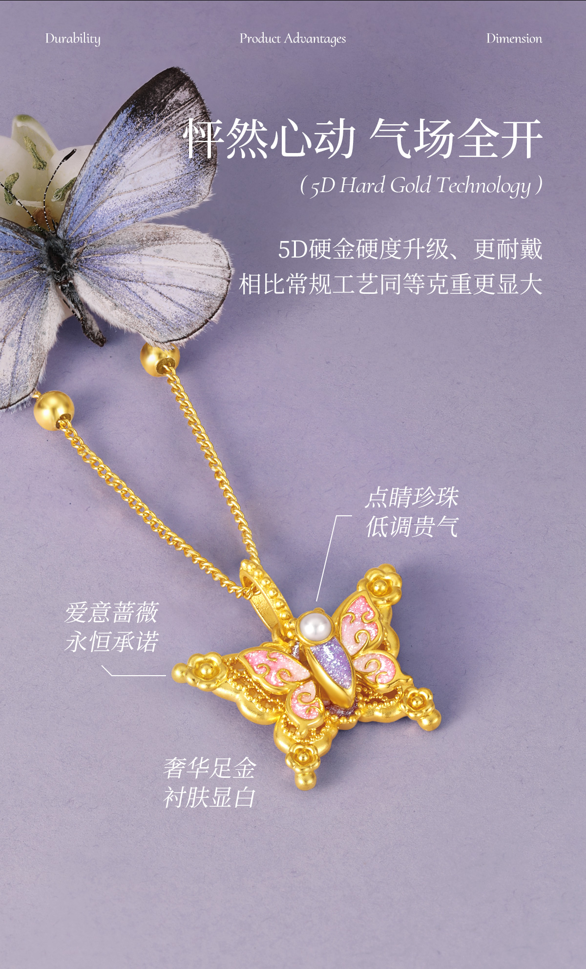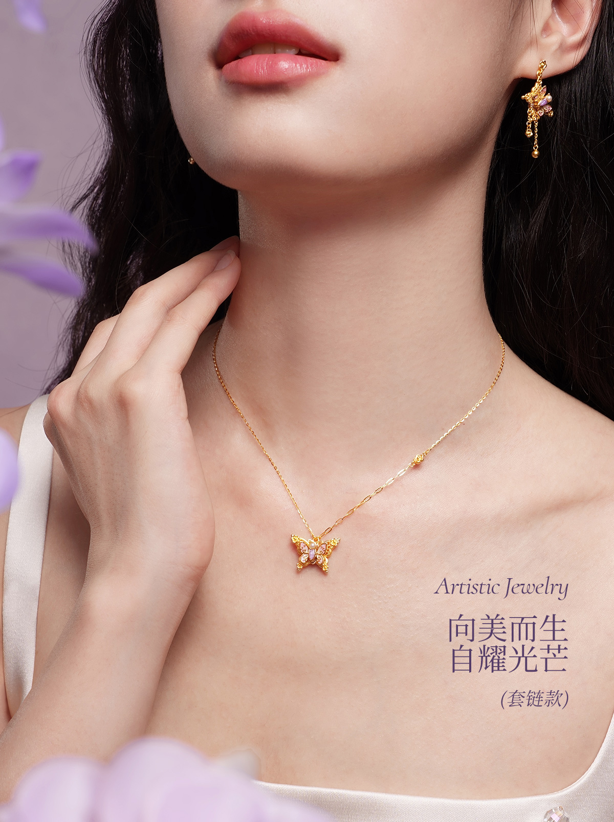 【无忧之夜同款】莫奈心动蝶舞周大生黄金项链吊坠足金莫奈花园系列荧光珐琅闪光蝴蝶挂坠七夕礼物送女友赠莫奈礼盒赠荧光灯