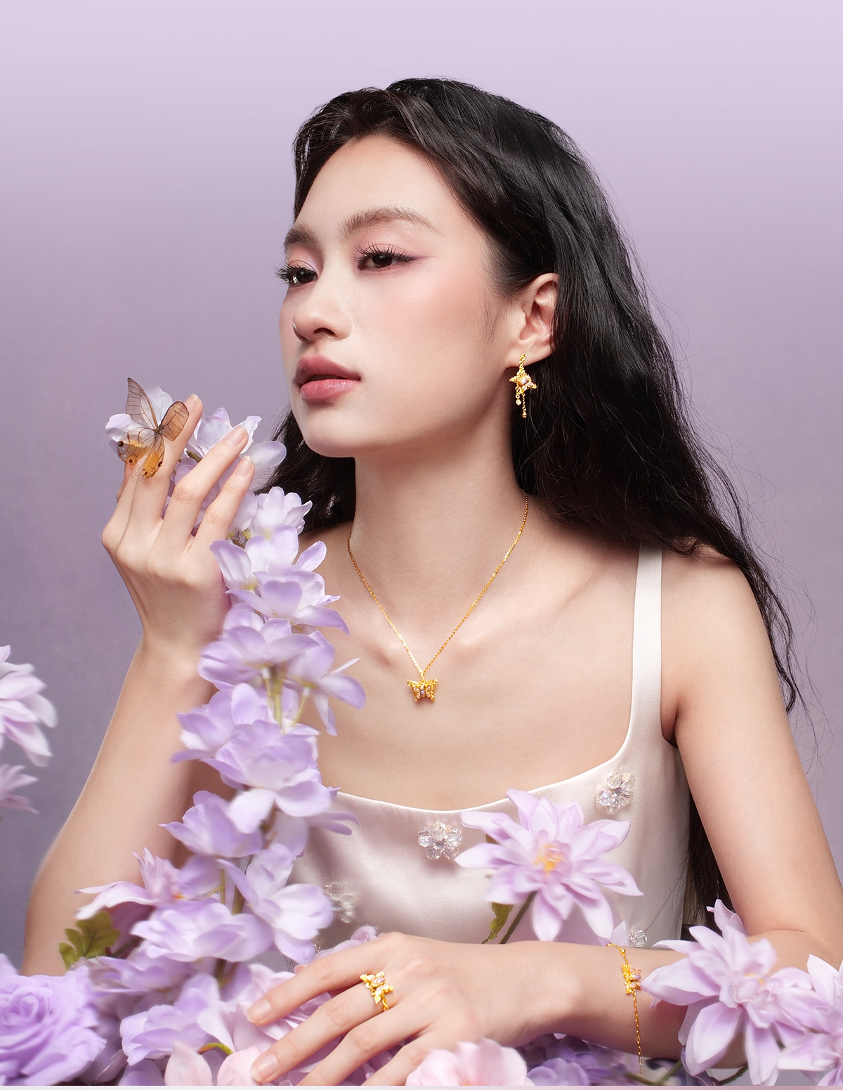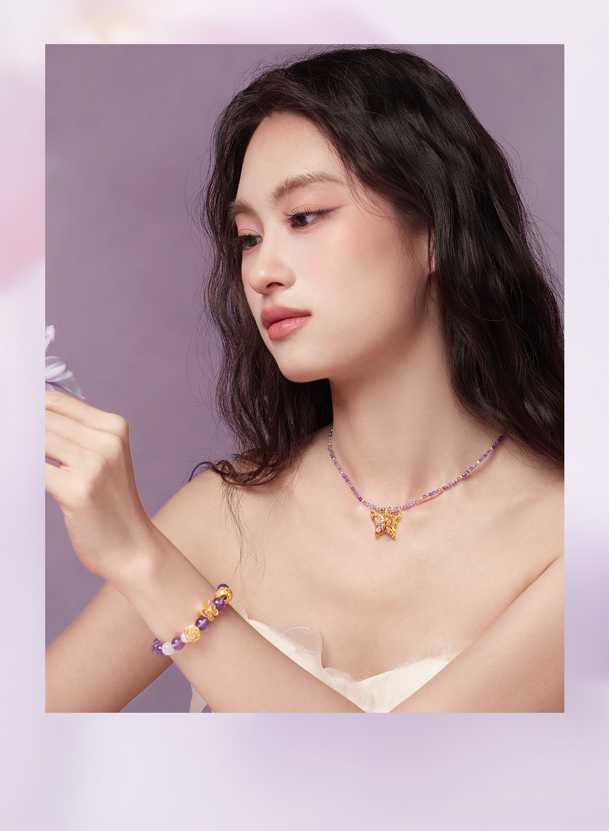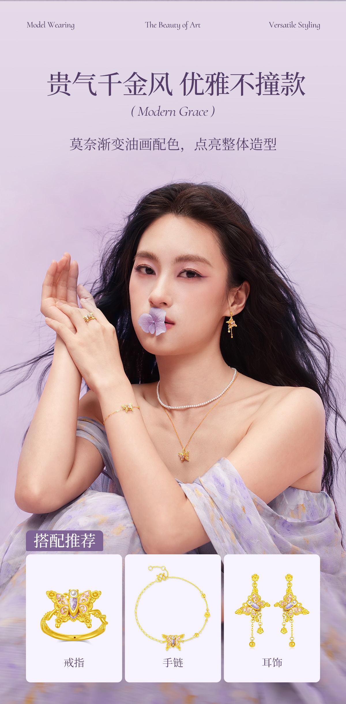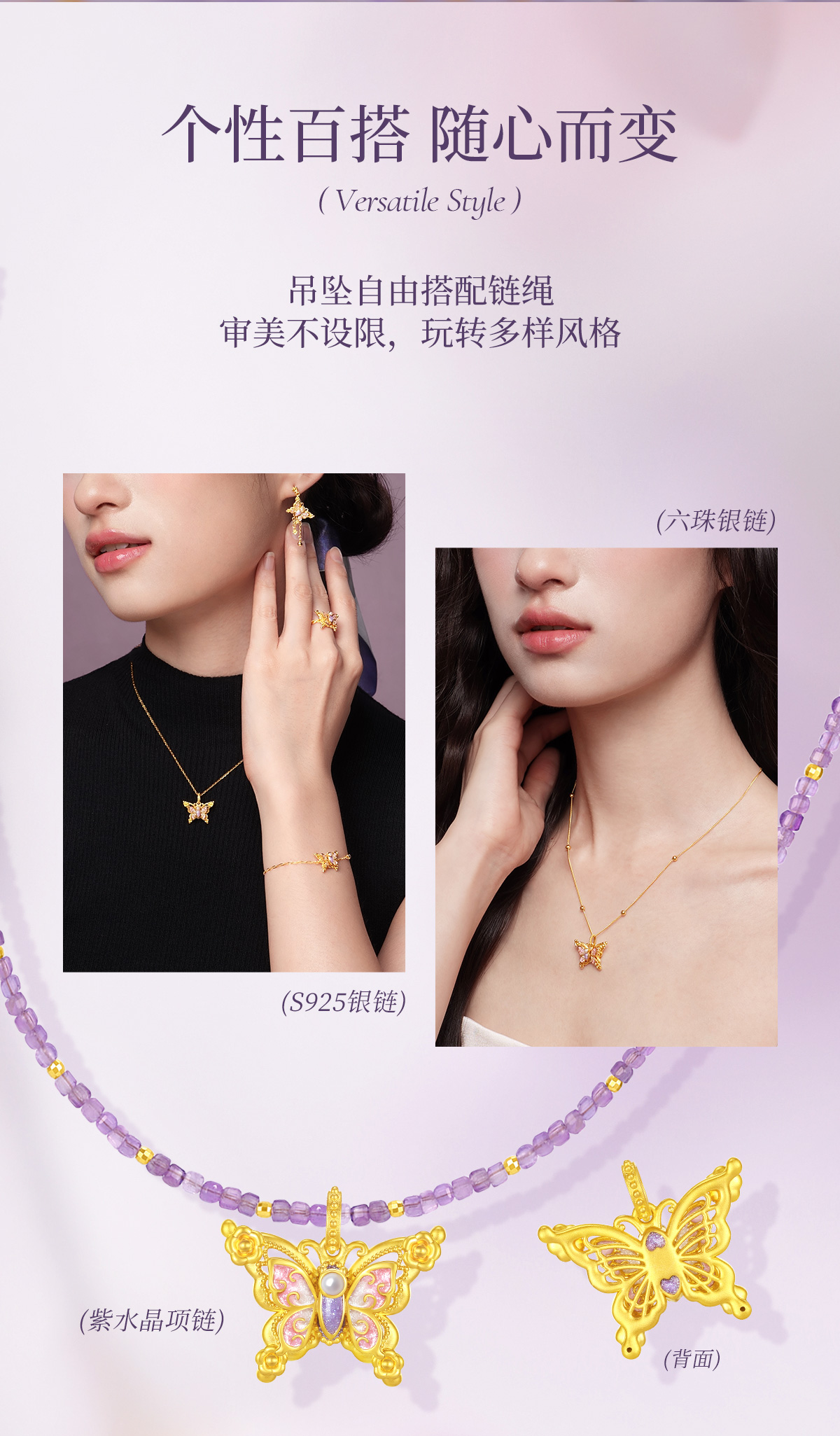 【无忧之夜同款】莫奈心动蝶舞周大生黄金项链吊坠足金莫奈花园系列荧光珐琅闪光蝴蝶挂坠七夕礼物送女友赠莫奈礼盒赠荧光灯