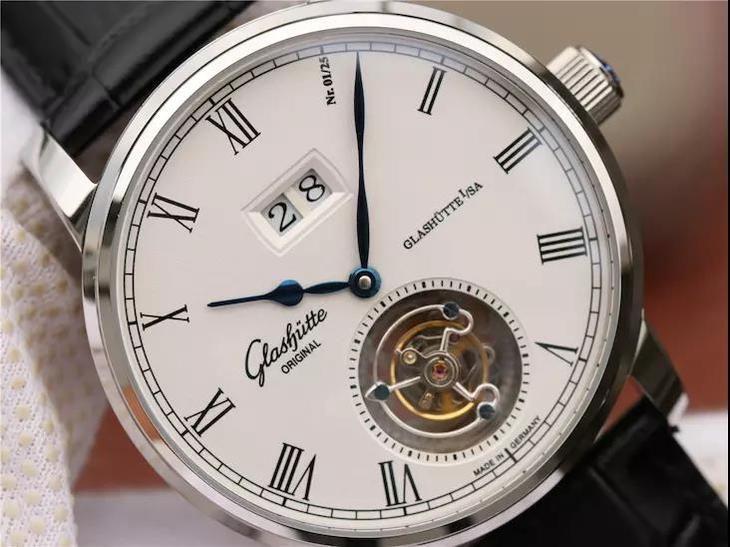 R8格拉苏蒂V3升级版大日历陀飞轮42mm腕此次主要针对表盘,根据zui新版本复刻,把1点位置刻度改为Nr.01/25,7点位置罗马刻度改到与正品一致。飞轮升级:这也是zui大特点之一,厂家不计成本,在制表大师经过无次数测试下,终于改造了与正品一样的飞轮,让飞轮更加有魅力。表带升级:购买原装正品鳄鱼皮带开模,做到与正品表带头尾长度一致,让此表配带起来更加舒服。