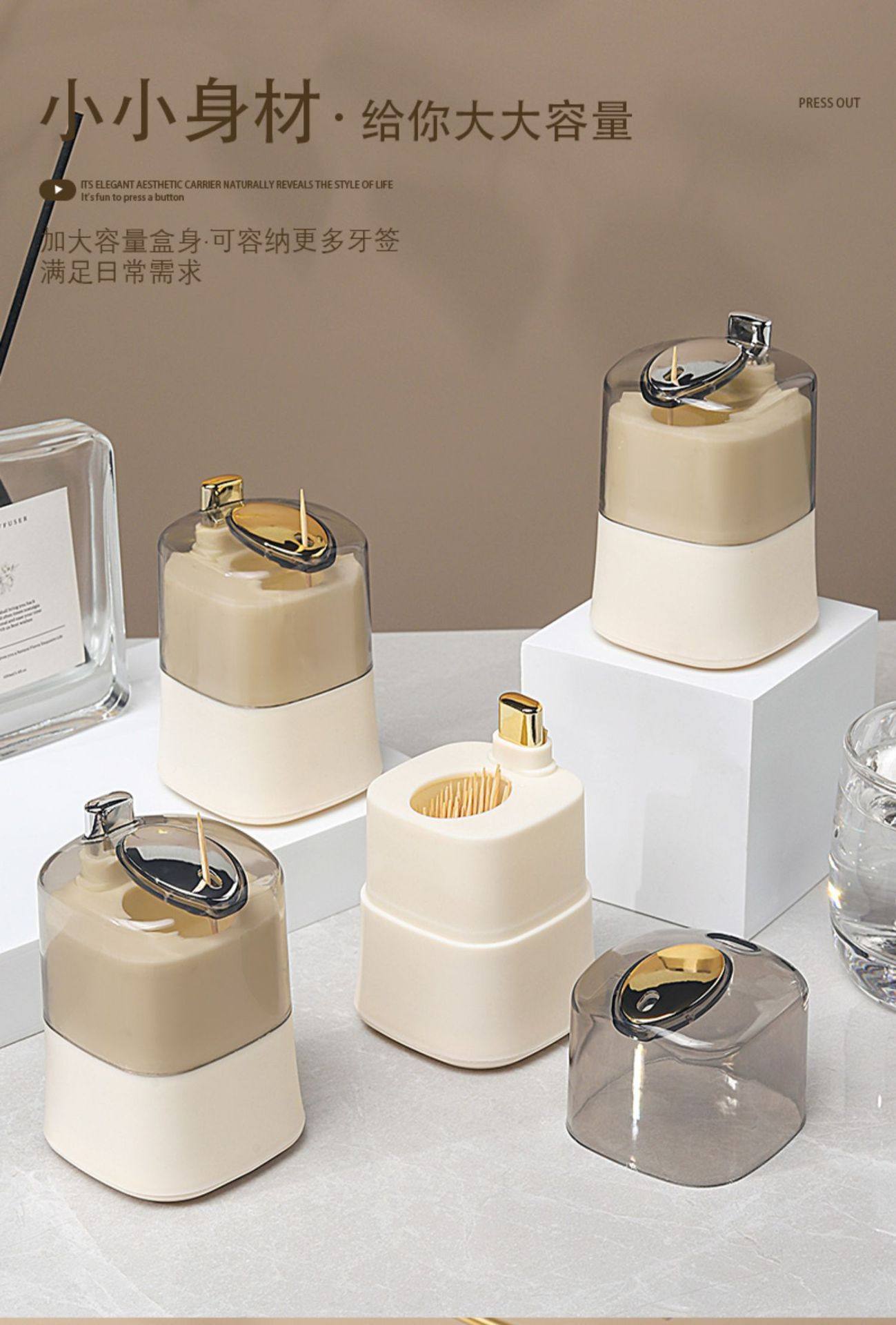 客厅式自便携随身商用罐竹签出牙签盒家用牙签创意牙签筒按压动弹