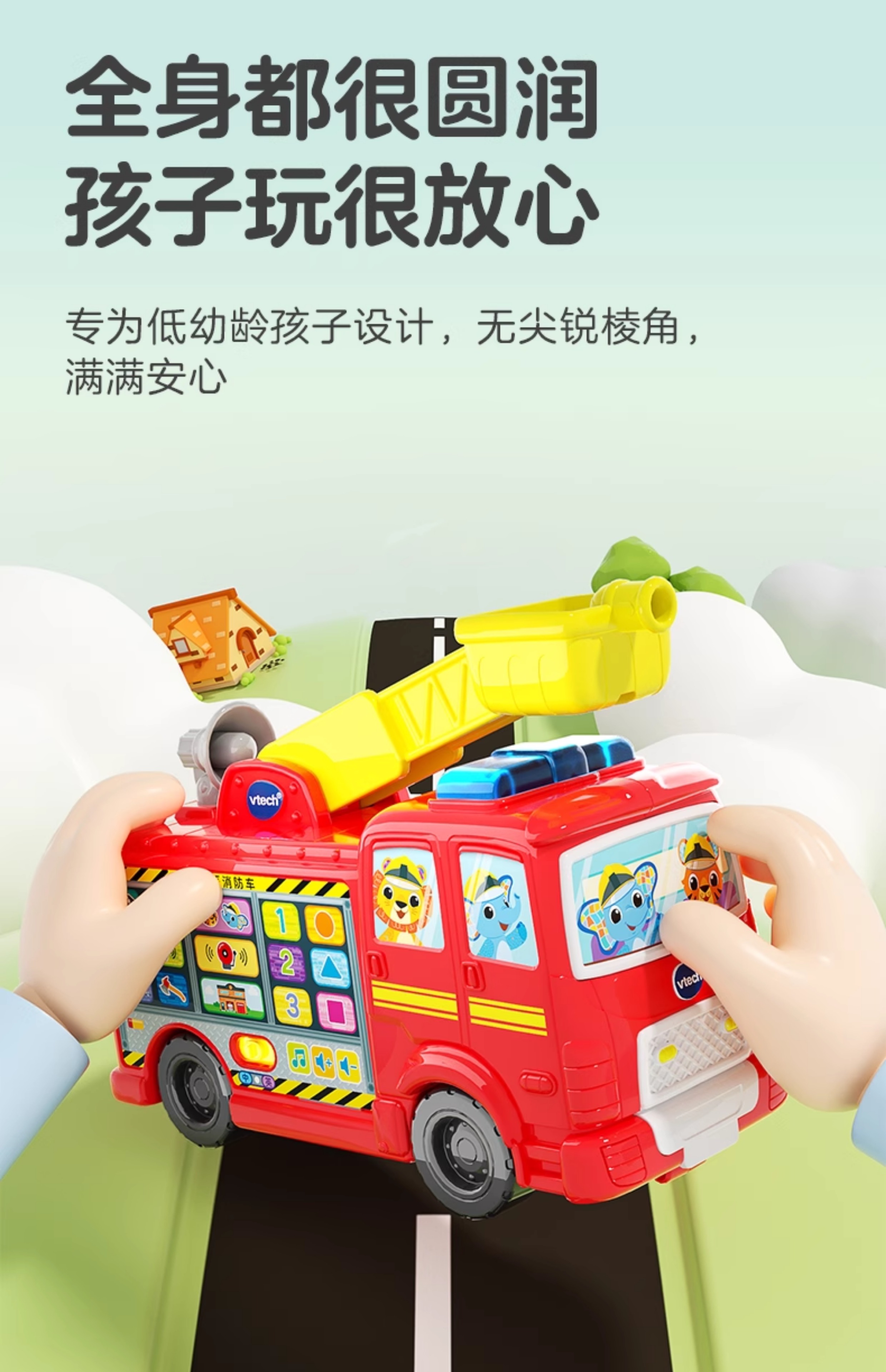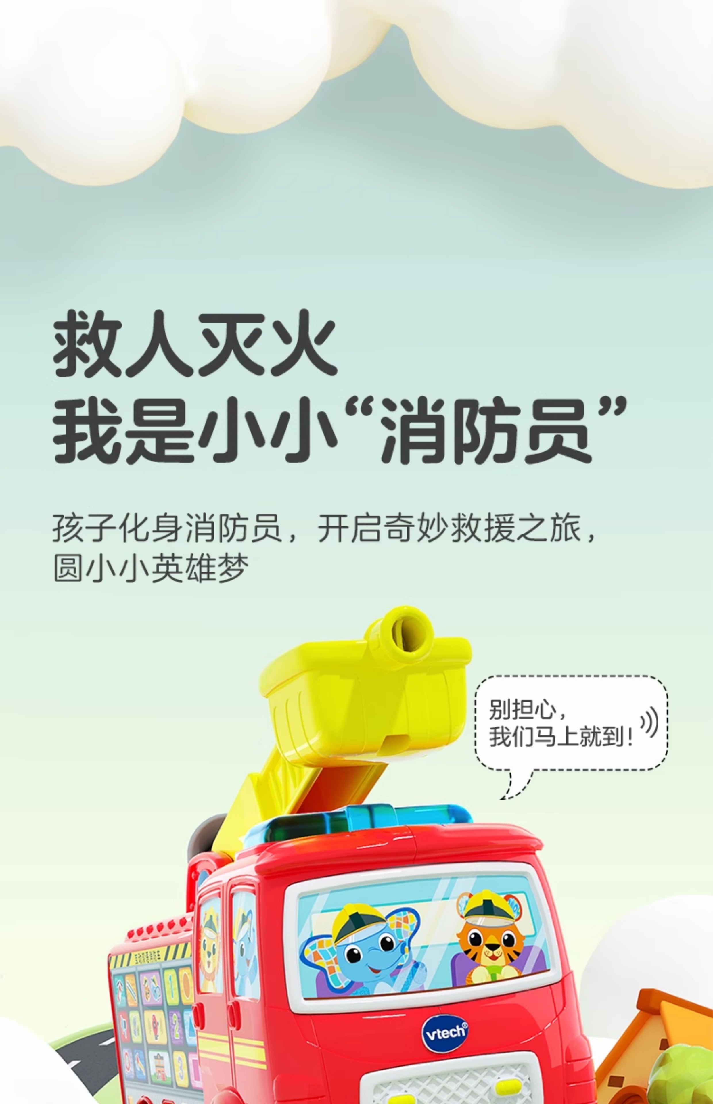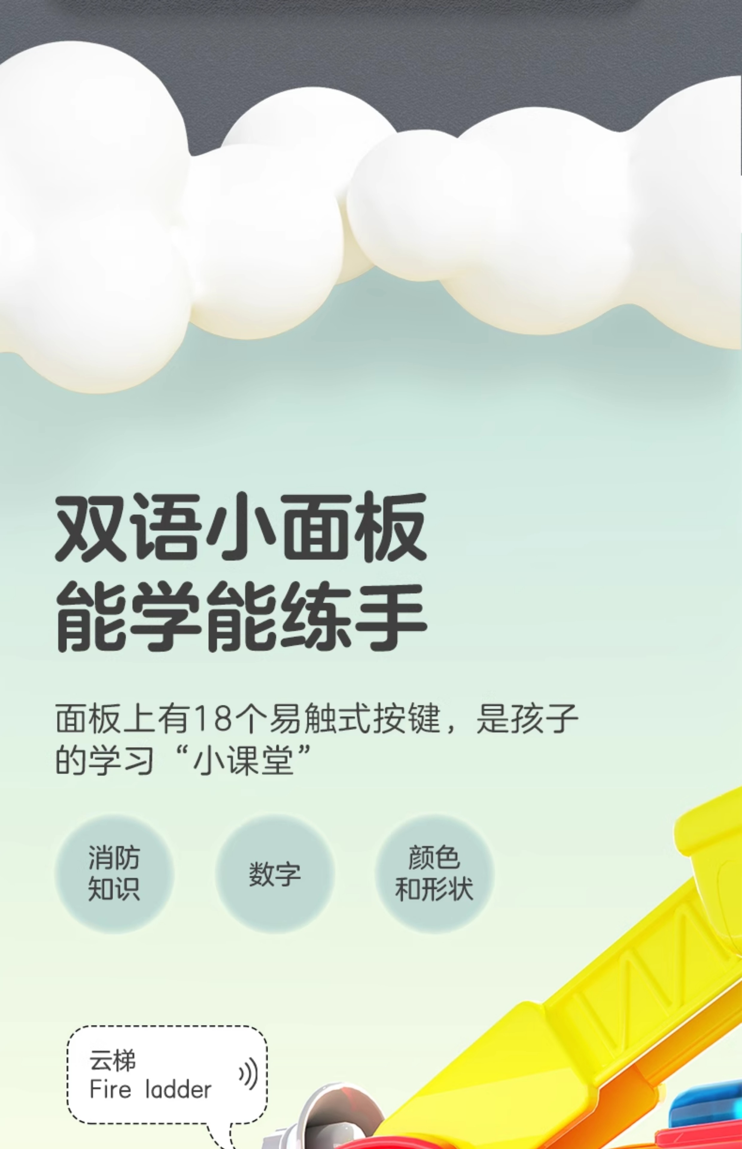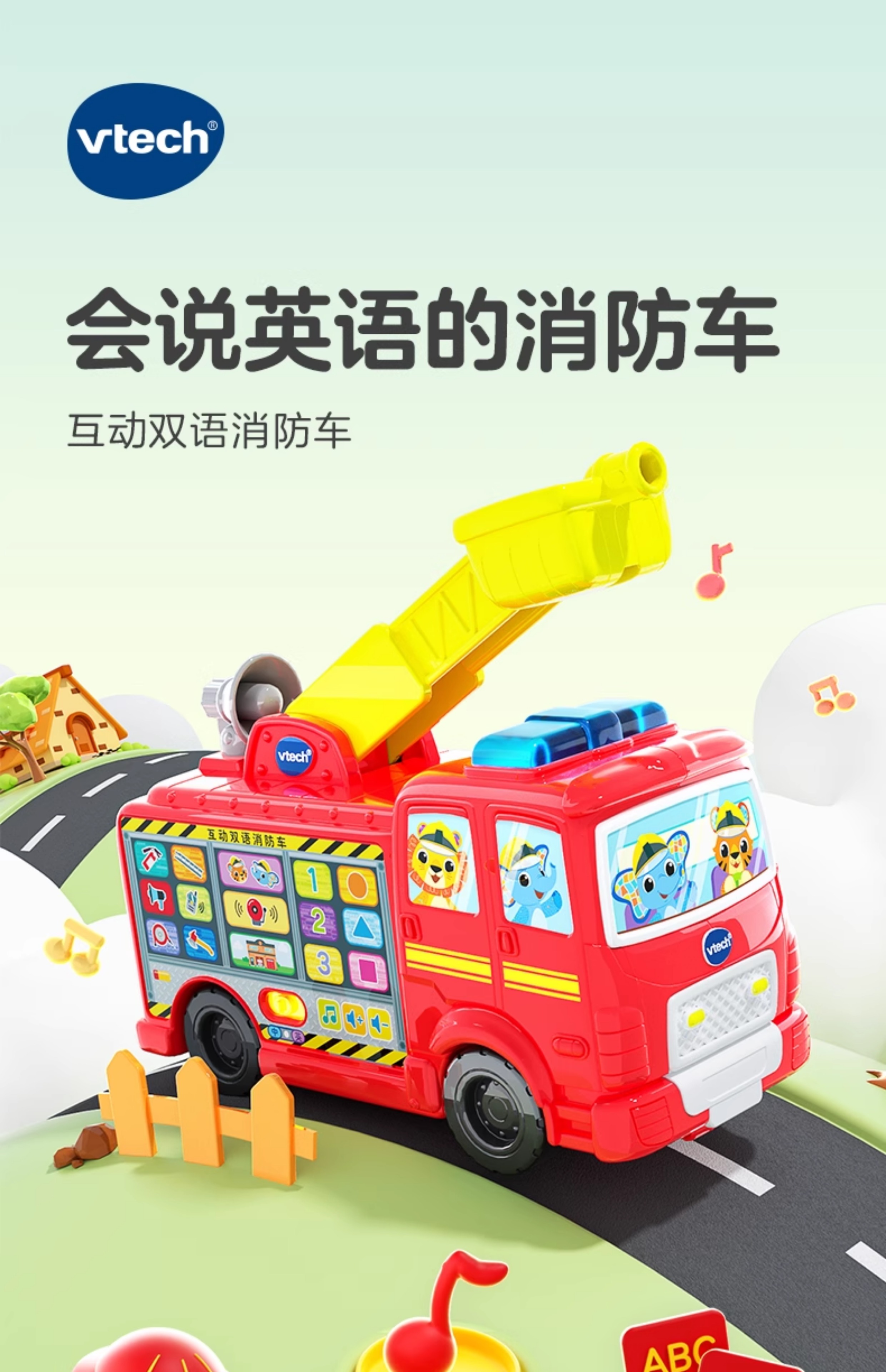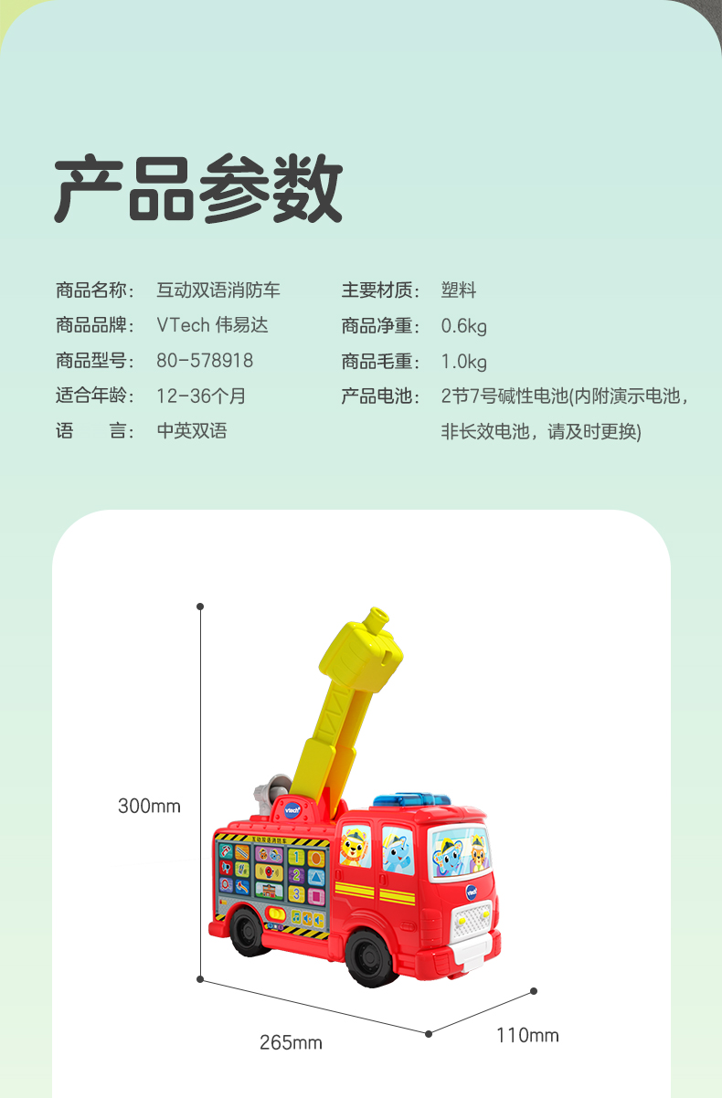伟易达互动双语消防车中英救援大号工程车儿童礼物玩具学习模型