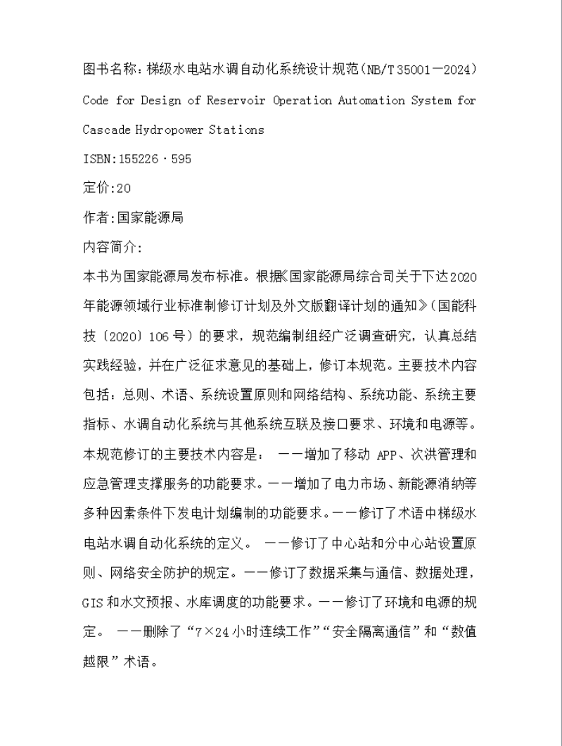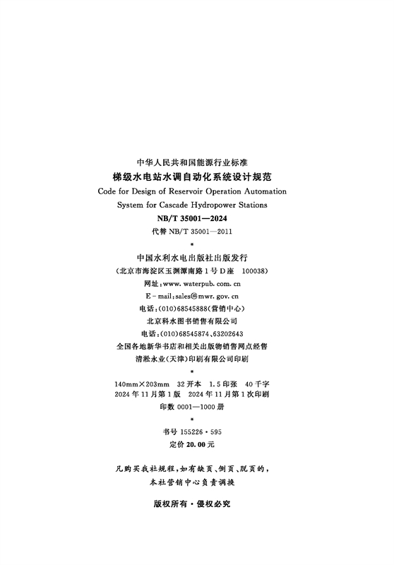梯级水电站水调自动化系统设计规范(NB/T 35001—2024)
