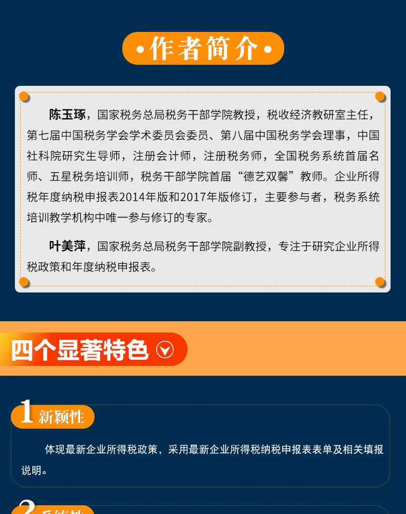 ——融合性。既系统梳理和解析企业所得税现行政策,又讲解《企业所得税纳税申报表》的填报和政策运用;同时,既详细解析《企业所得税年度纳税申报表》的填报,也讲解《企业所得税月(季)度预缴纳税申报表》的填报。