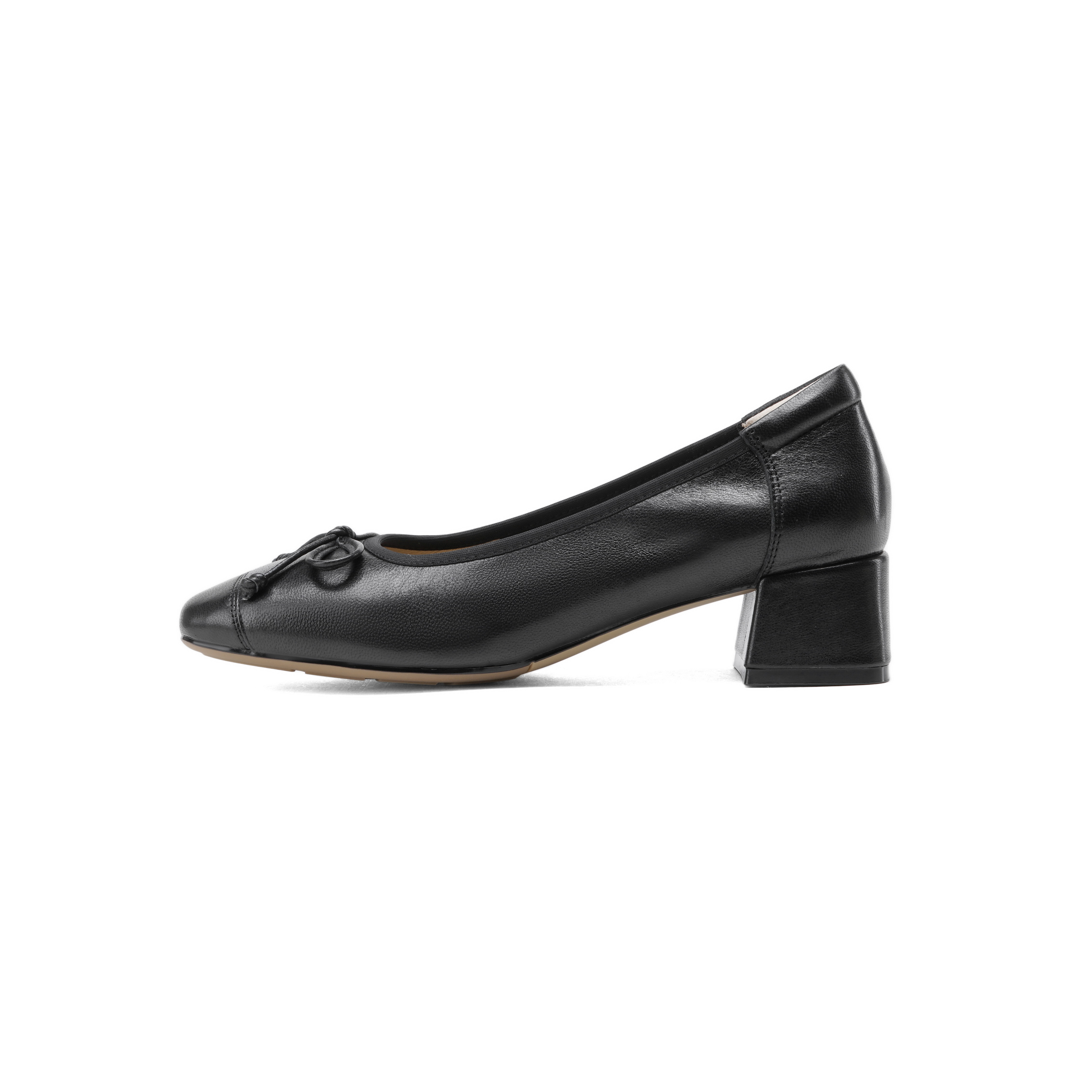 西村名物2025年春季新款舒适平底蝴蝶结饰扣百搭中跟单鞋X25AE14811