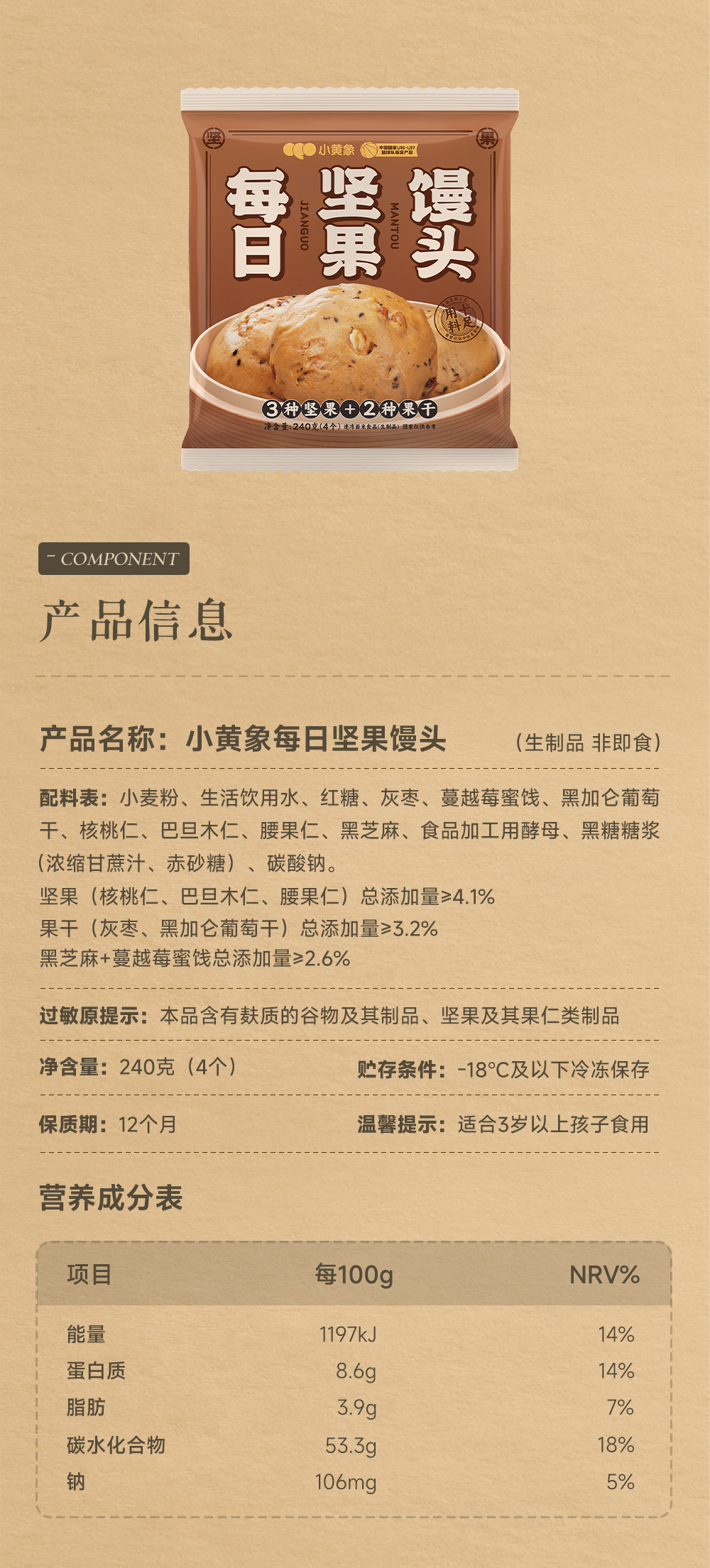 【小黄象年末囤货狂欢🔥🔥全场满299元赠定制冬季饼饼大毛毯丨另有169元/199元档赠品】买就送1片鸡排,口味随机!🔥每日坚果馒头240克(60g*4个)*袋 多规格可选 fx zong