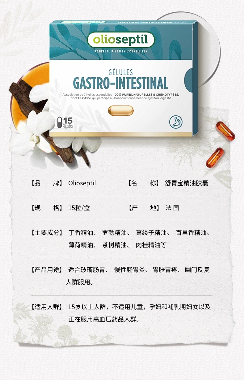 保税直发 olioseptil 舒胃宝胶囊 15粒/盒 1盒/3盒
