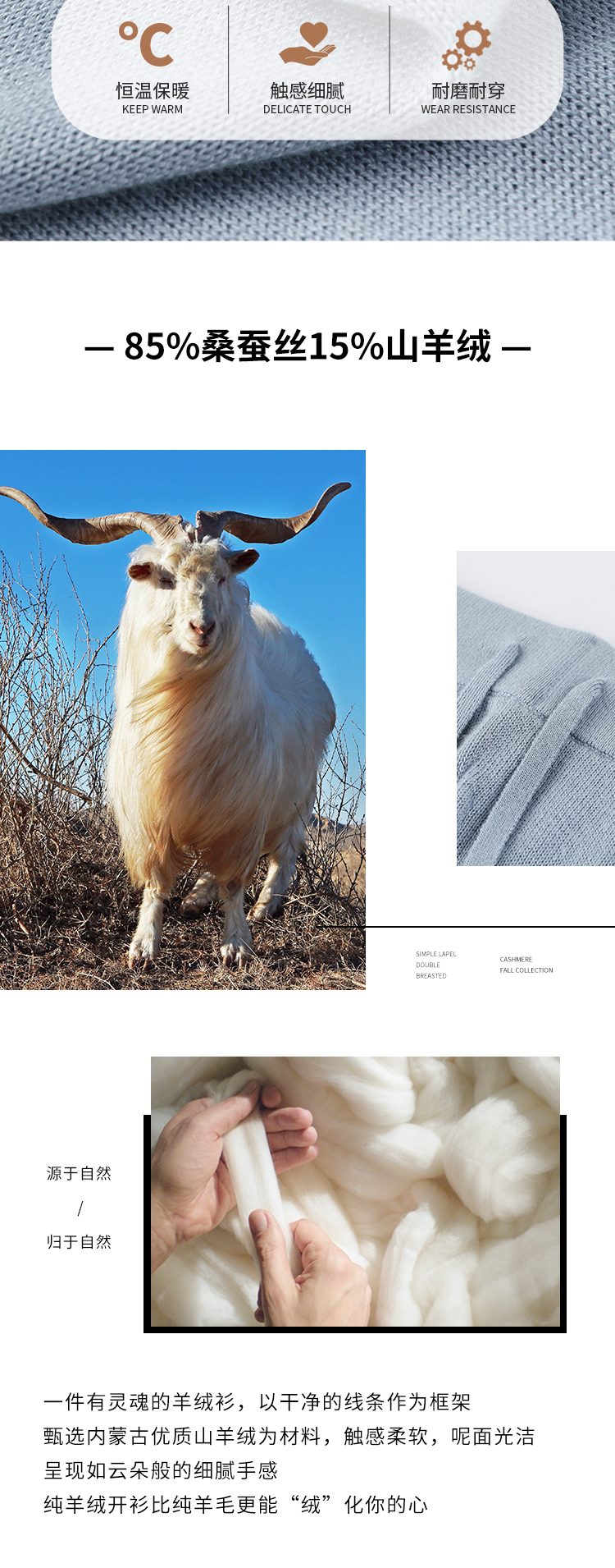 东黎羊绒是赤峰东荣集团自主品牌,自有牧场/羊绒制品全产业链优势,实现了羊绒从“牧场”到“商场”的华丽转变。