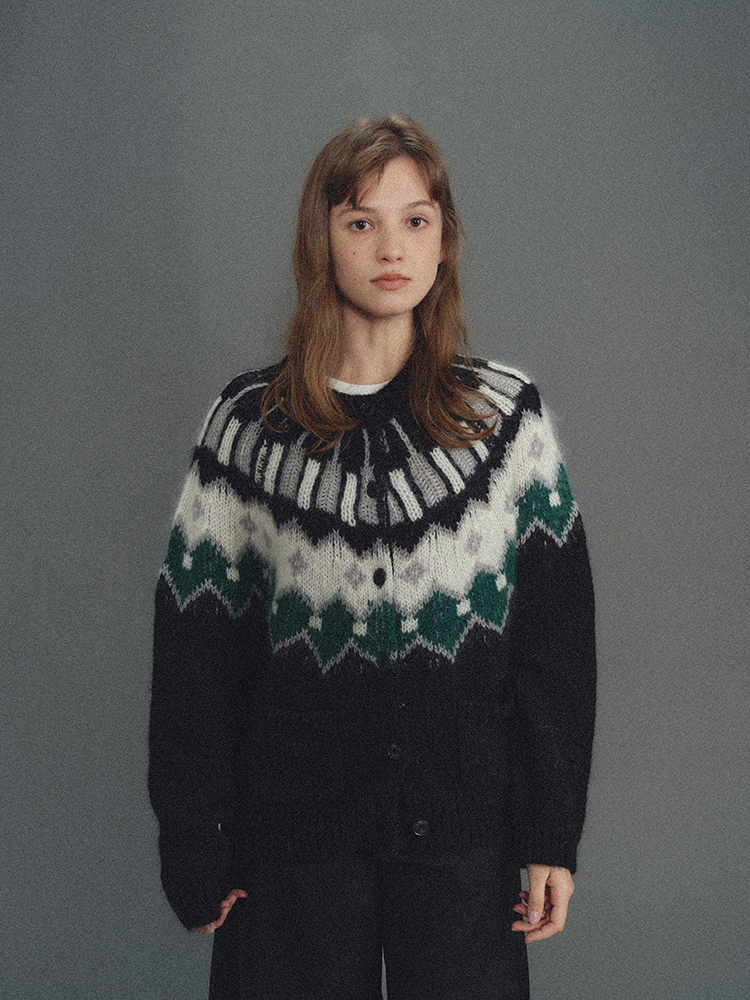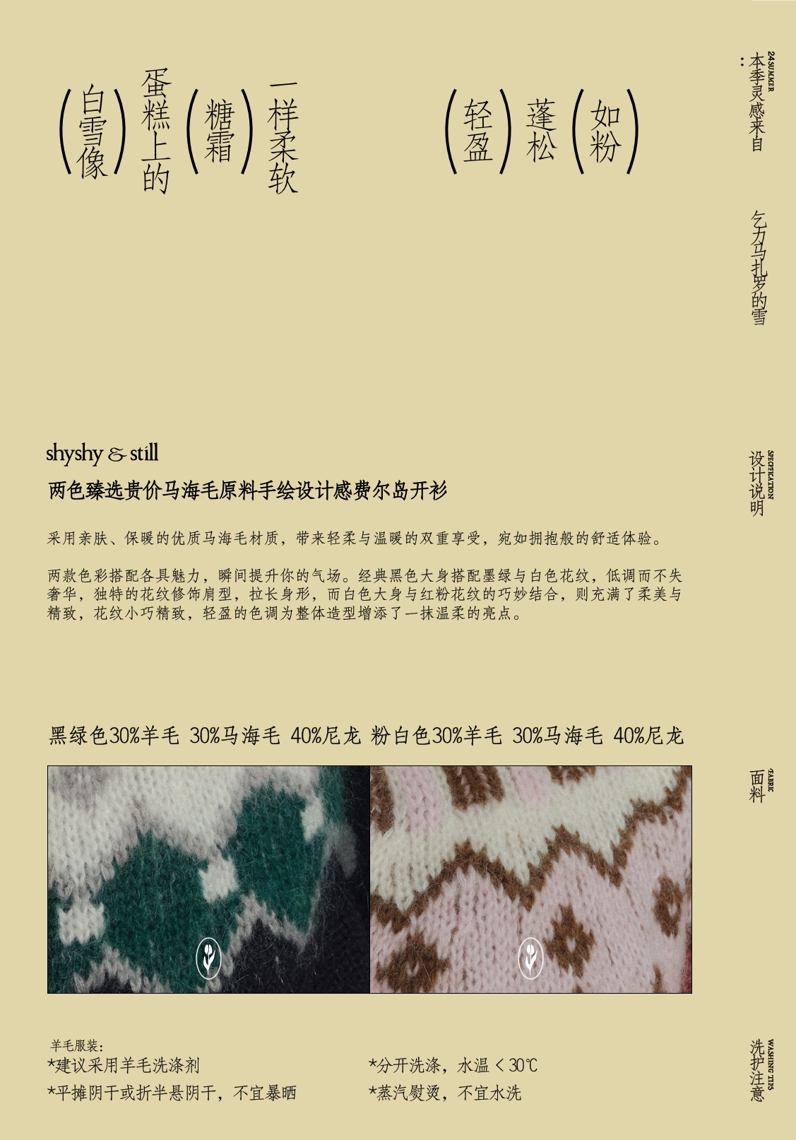 shyshystill/shy202408068/两色臻选贵价马海毛原料手绘设计感费尔岛开衫
