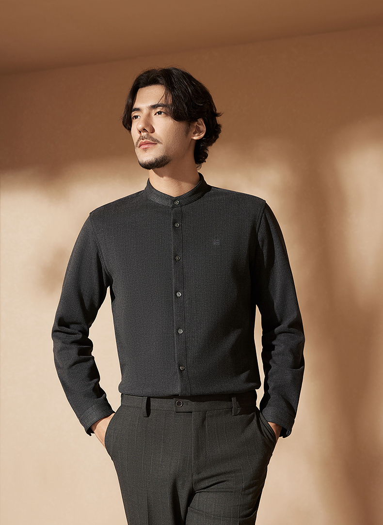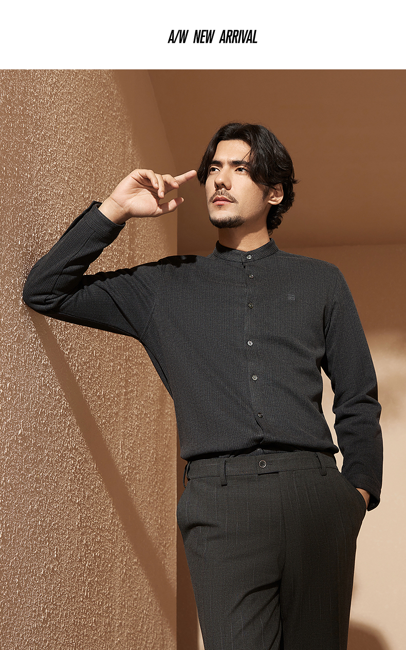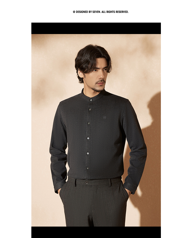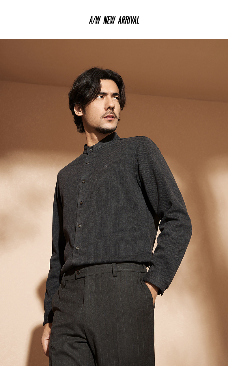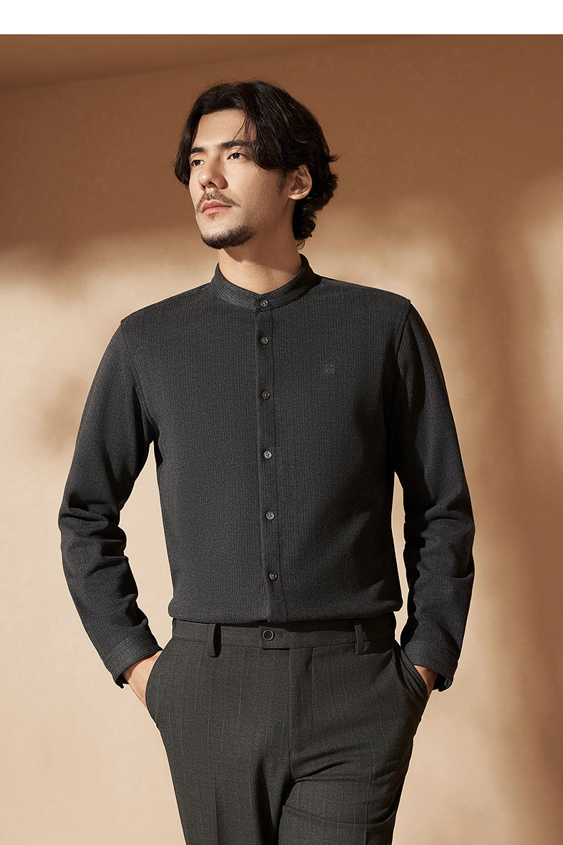 【中华立领】柒牌男士长袖衬衫2024秋冬新款时尚休闲双面磨毛衬衣127A70080