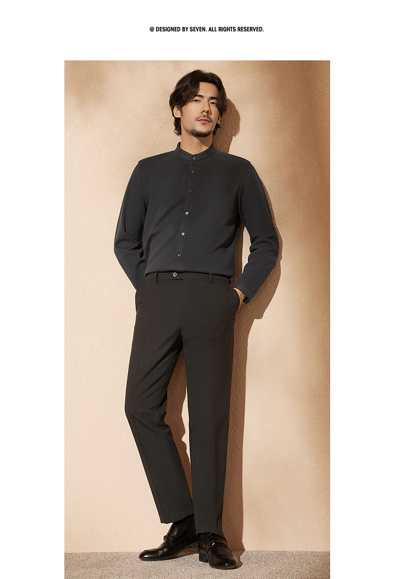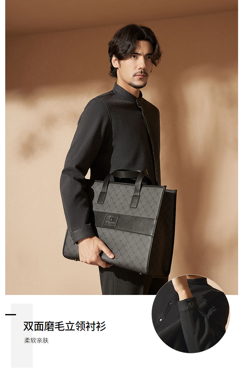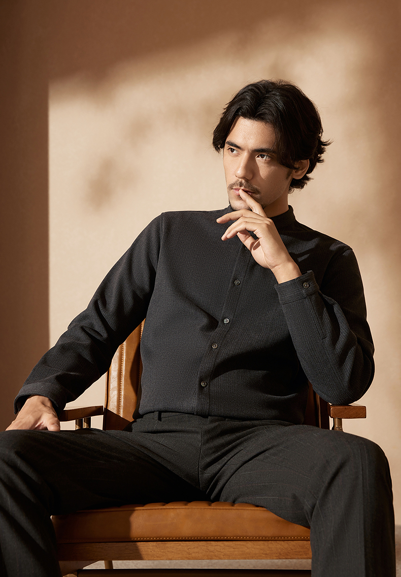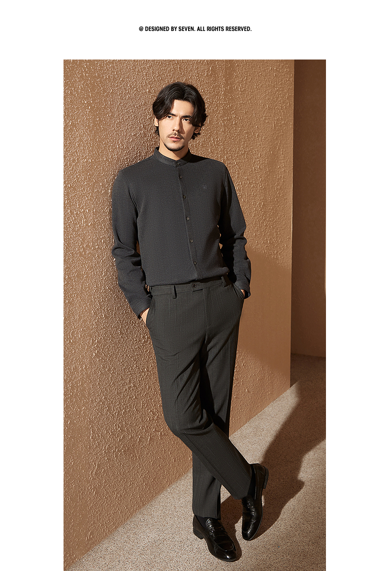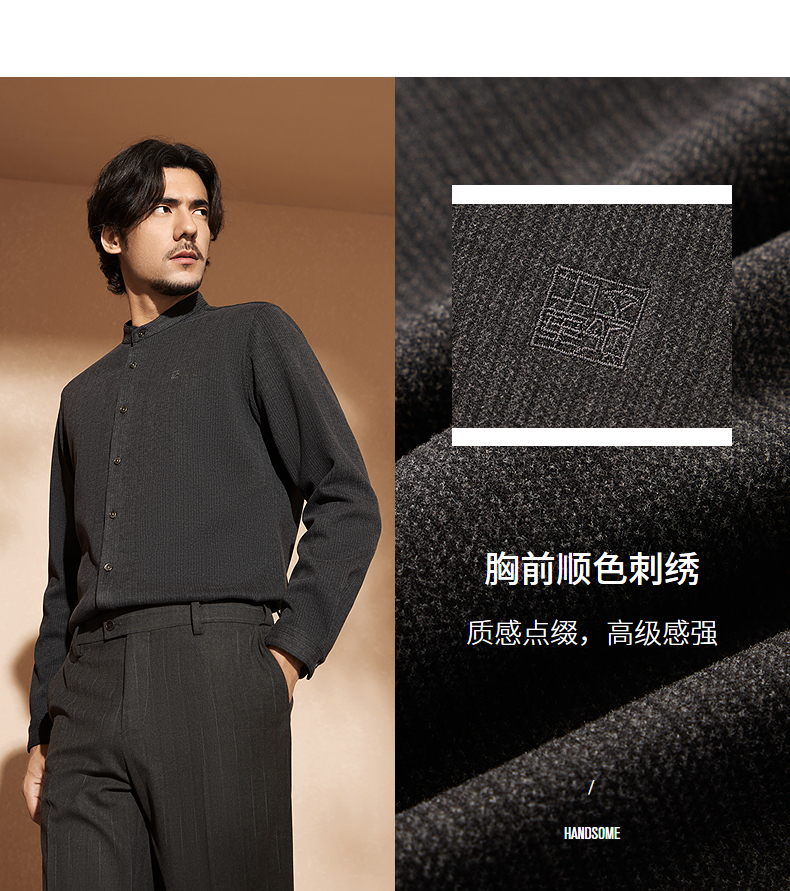 【中华立领】柒牌男士长袖衬衫2024秋冬新款时尚休闲双面磨毛衬衣127A70080