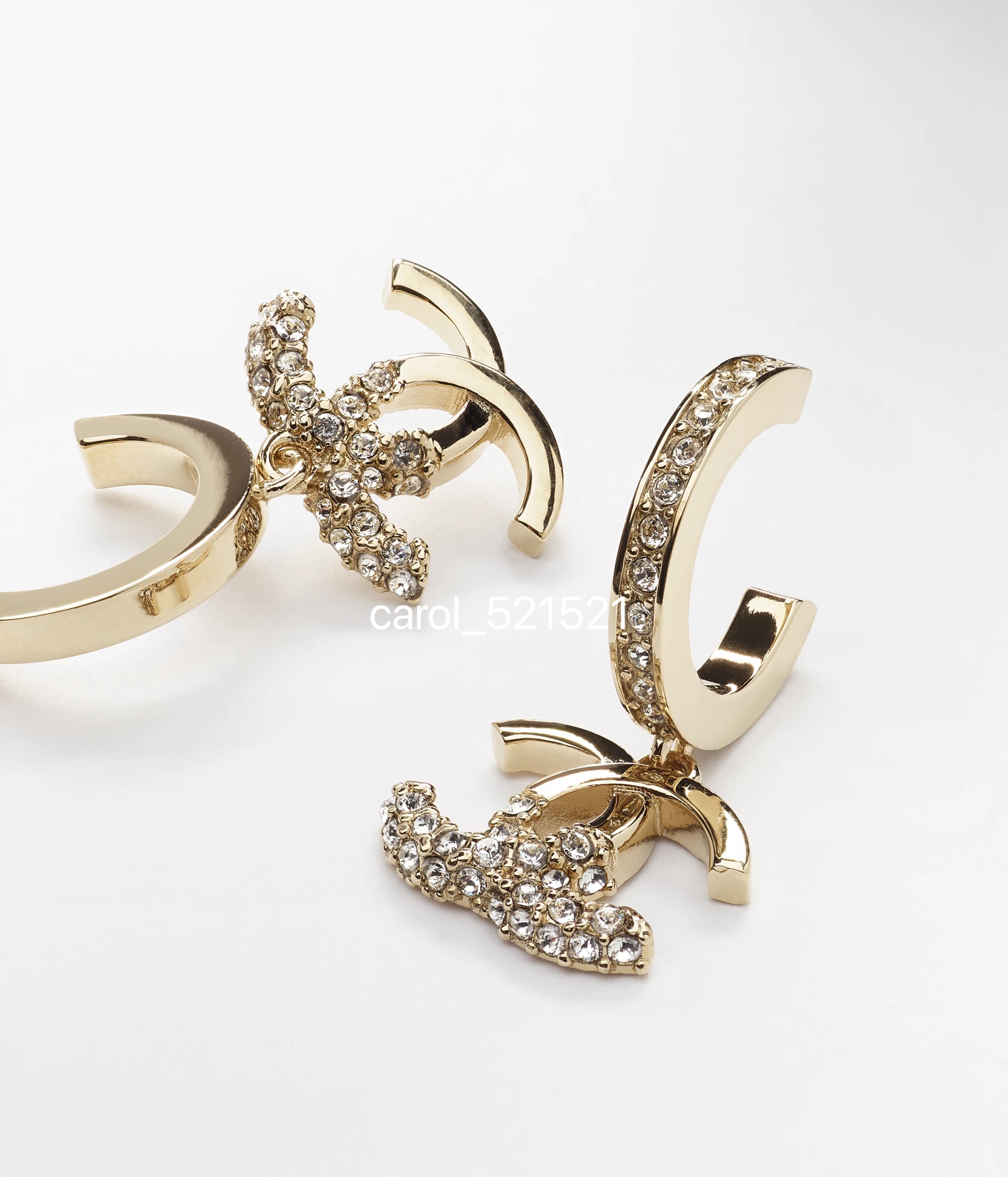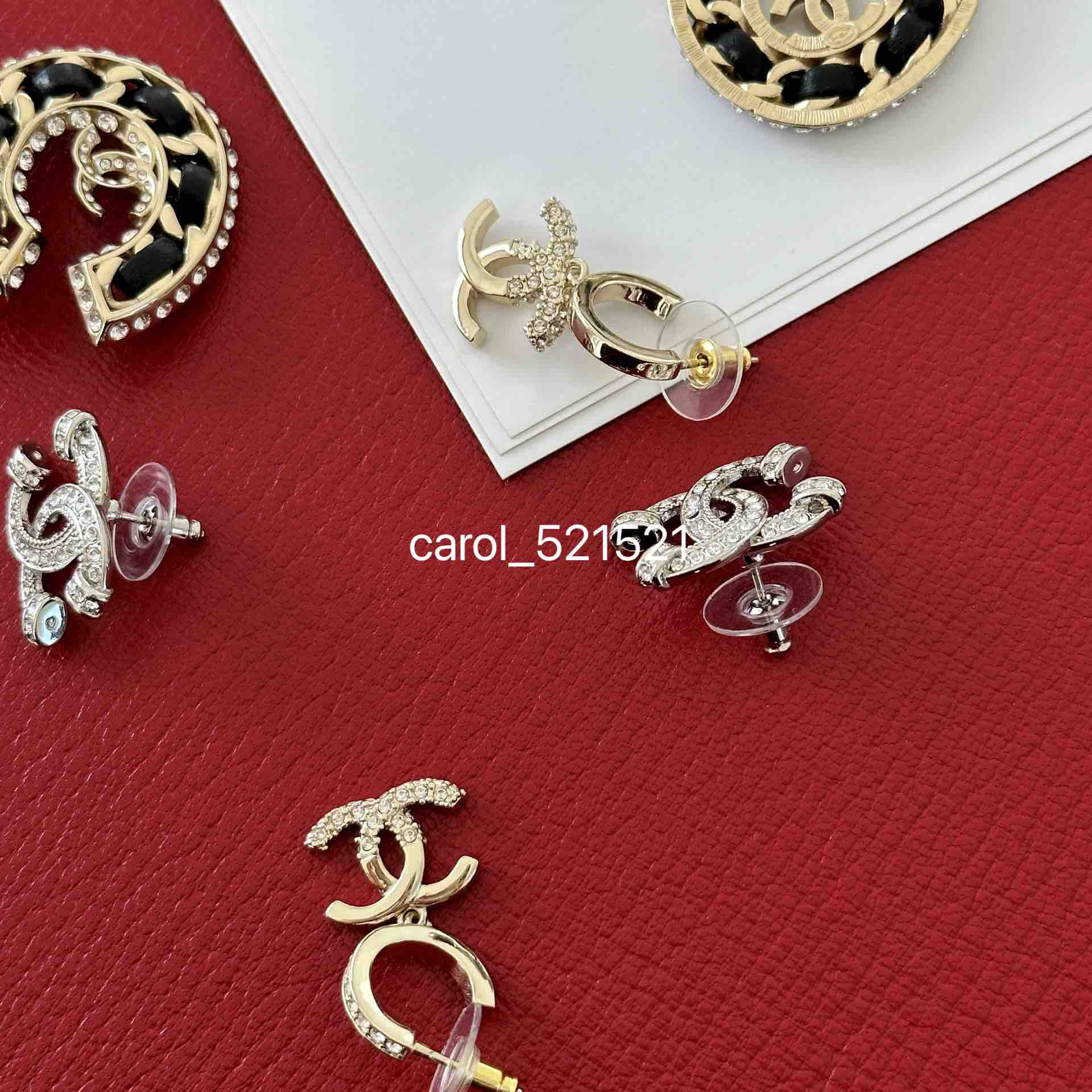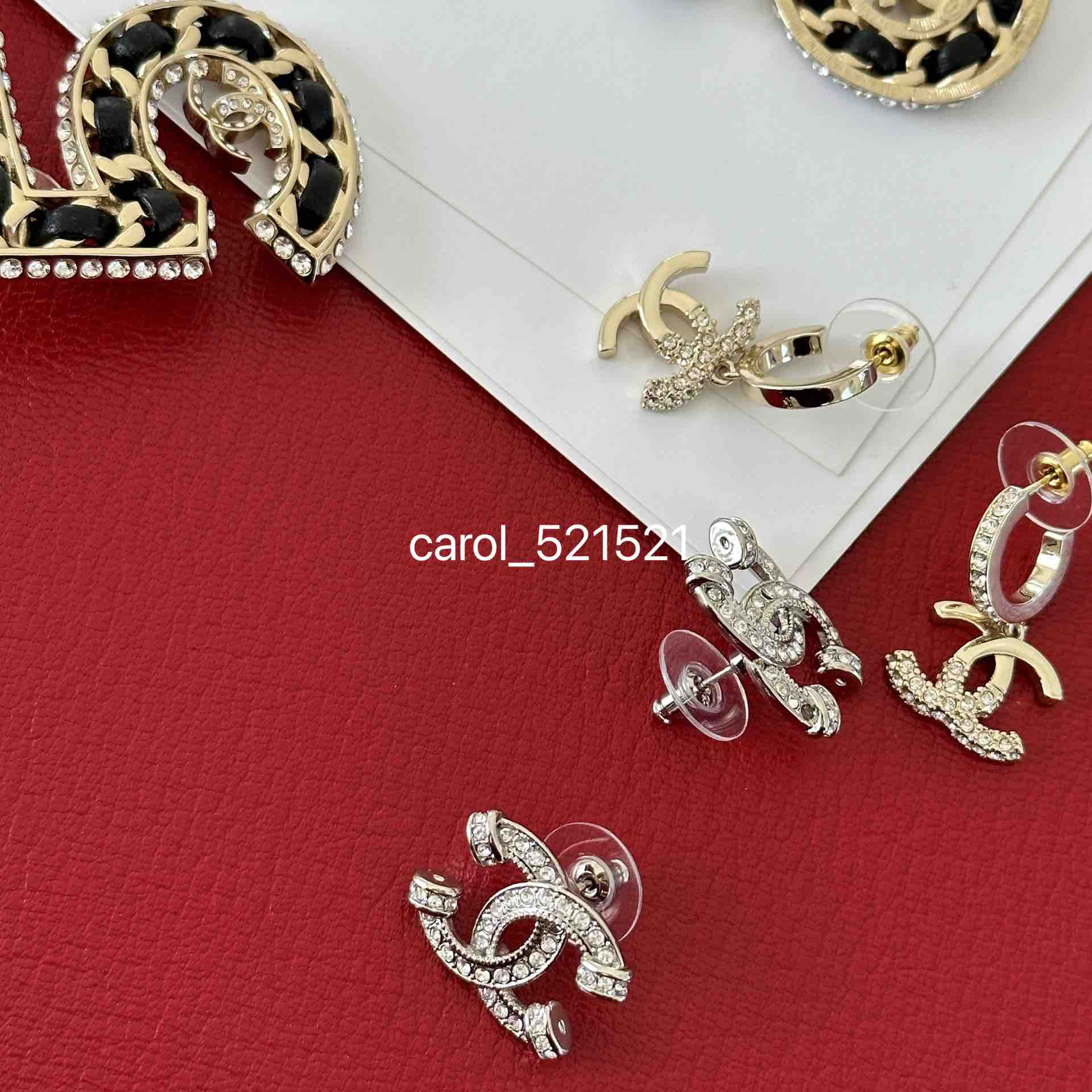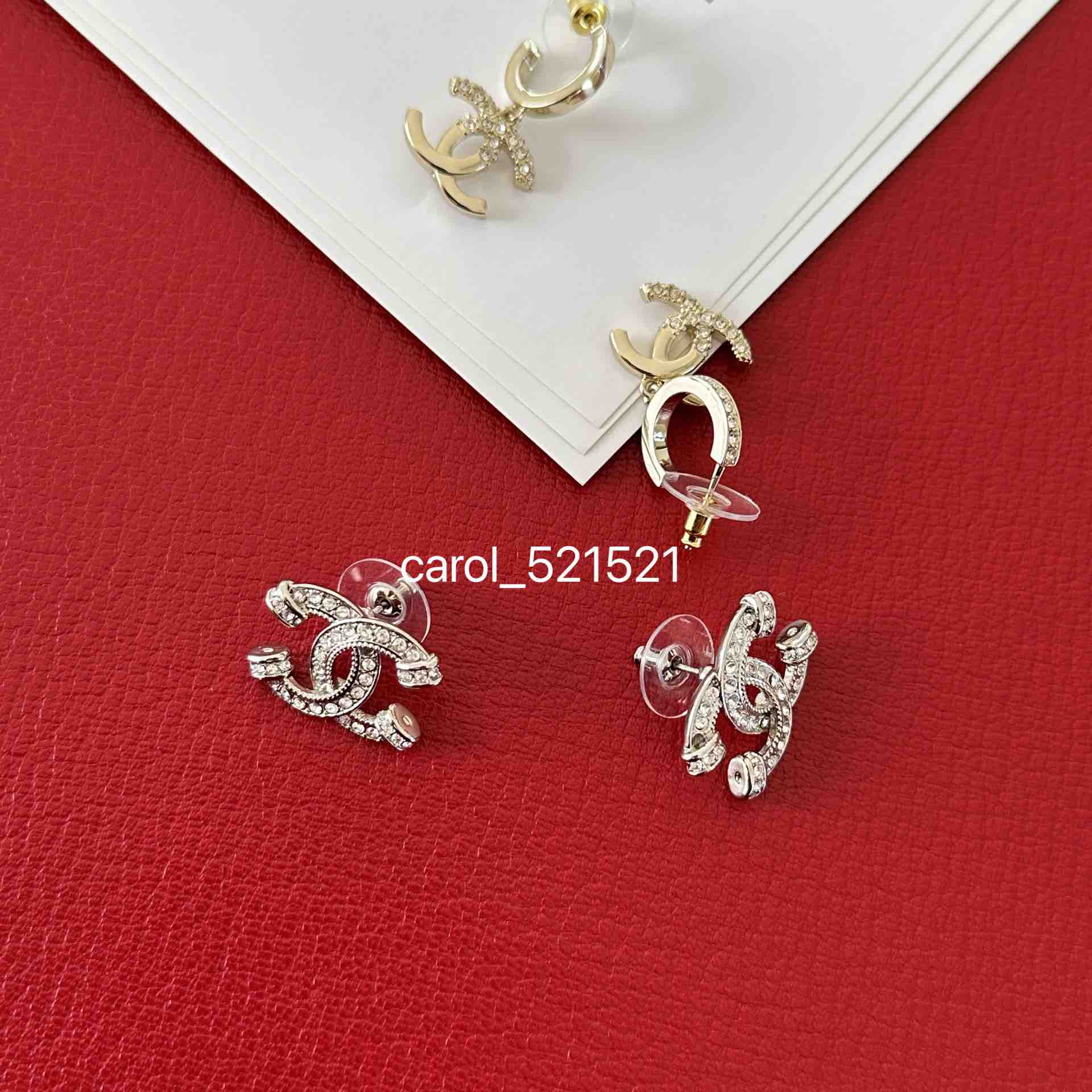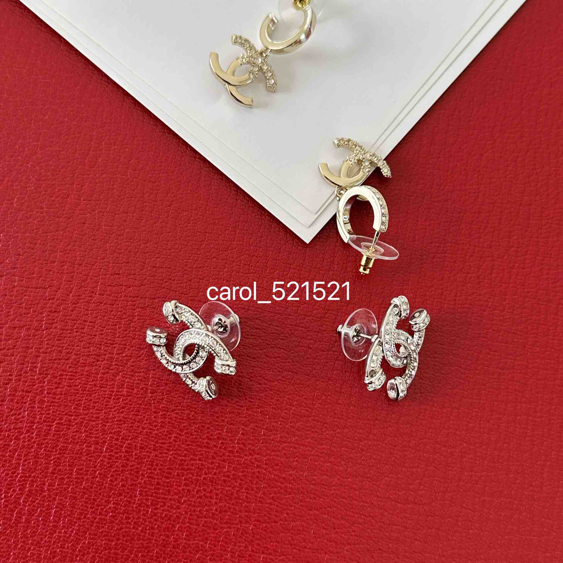 双C银色满钻耳钉:2x1.5CM,单只重3.3G
