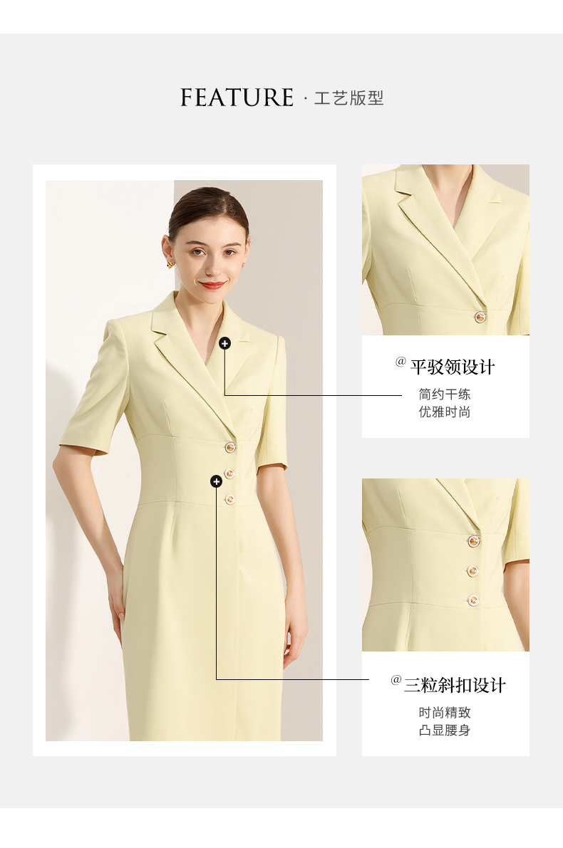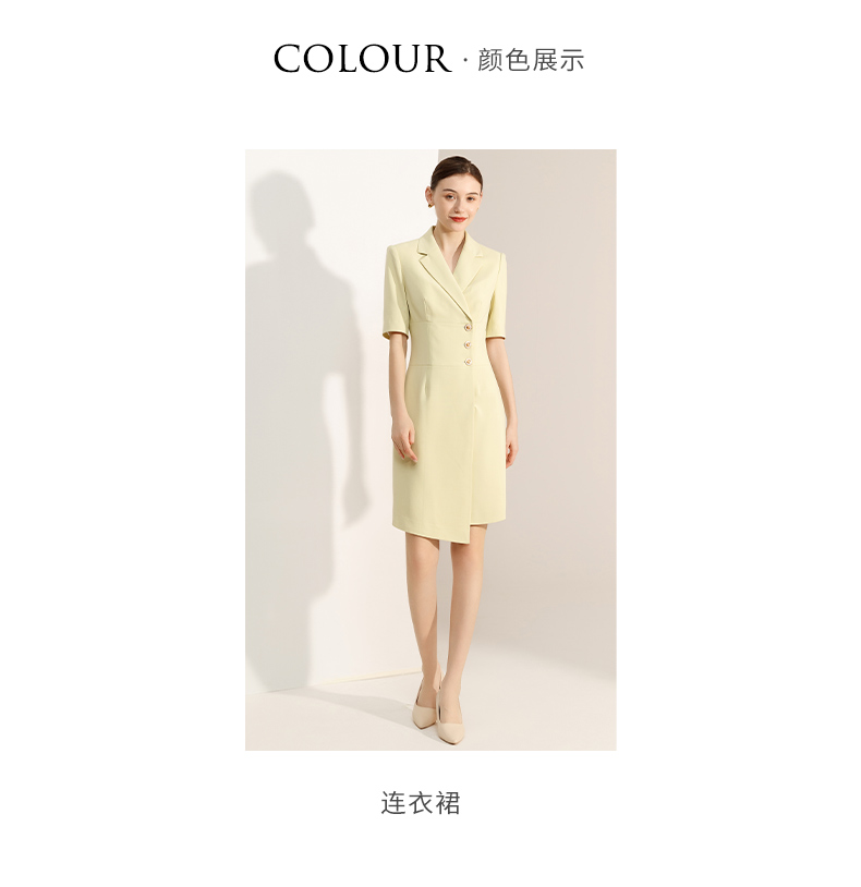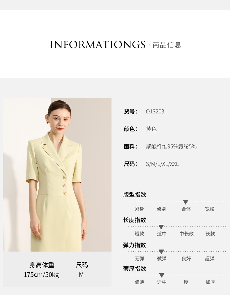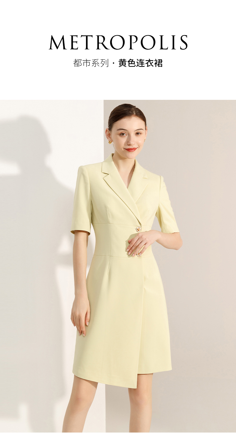 IWY/高级感黄色西装连衣裙女夏季薄款气质职业裙装播音主持人上镜正装Q13203