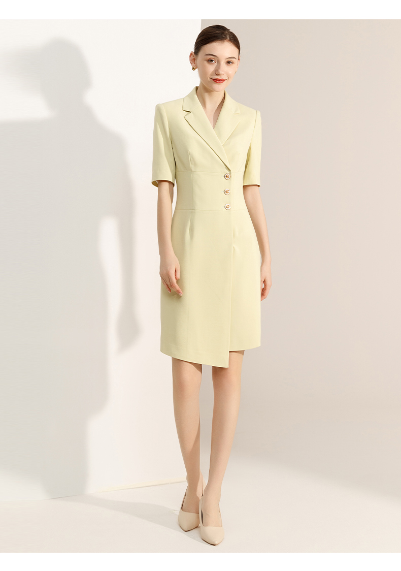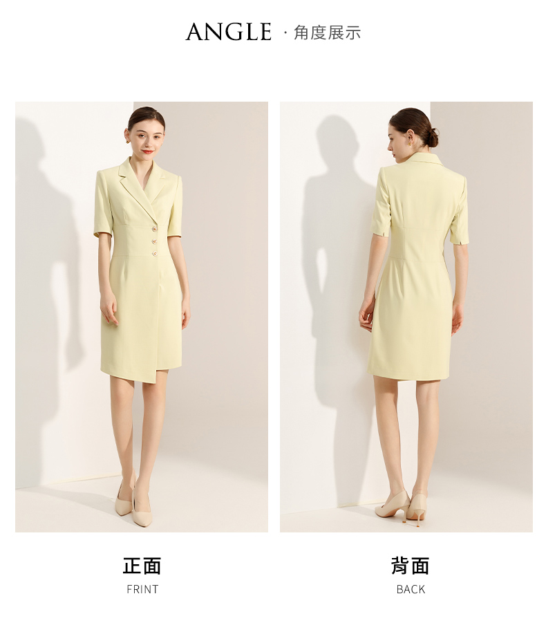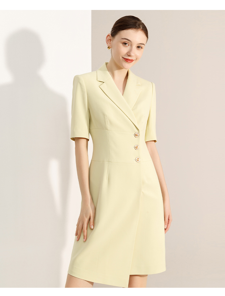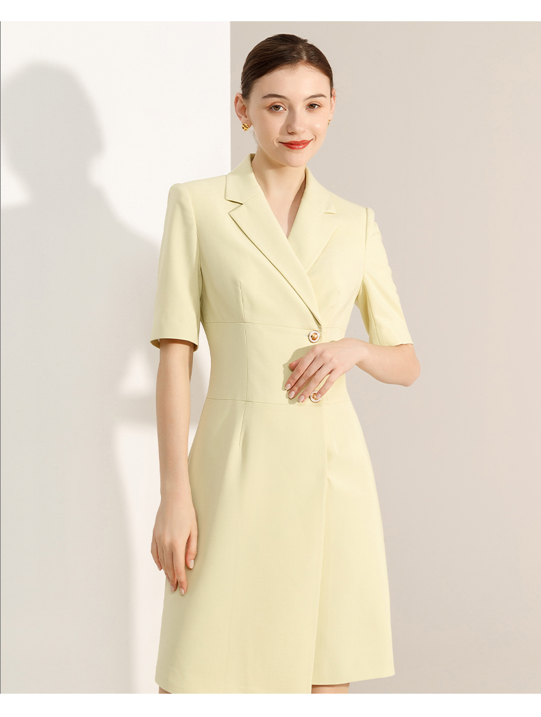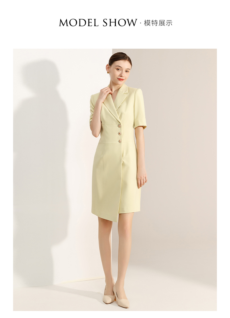 IWY/高级感黄色西装连衣裙女夏季薄款气质职业裙装播音主持人上镜正装Q13203