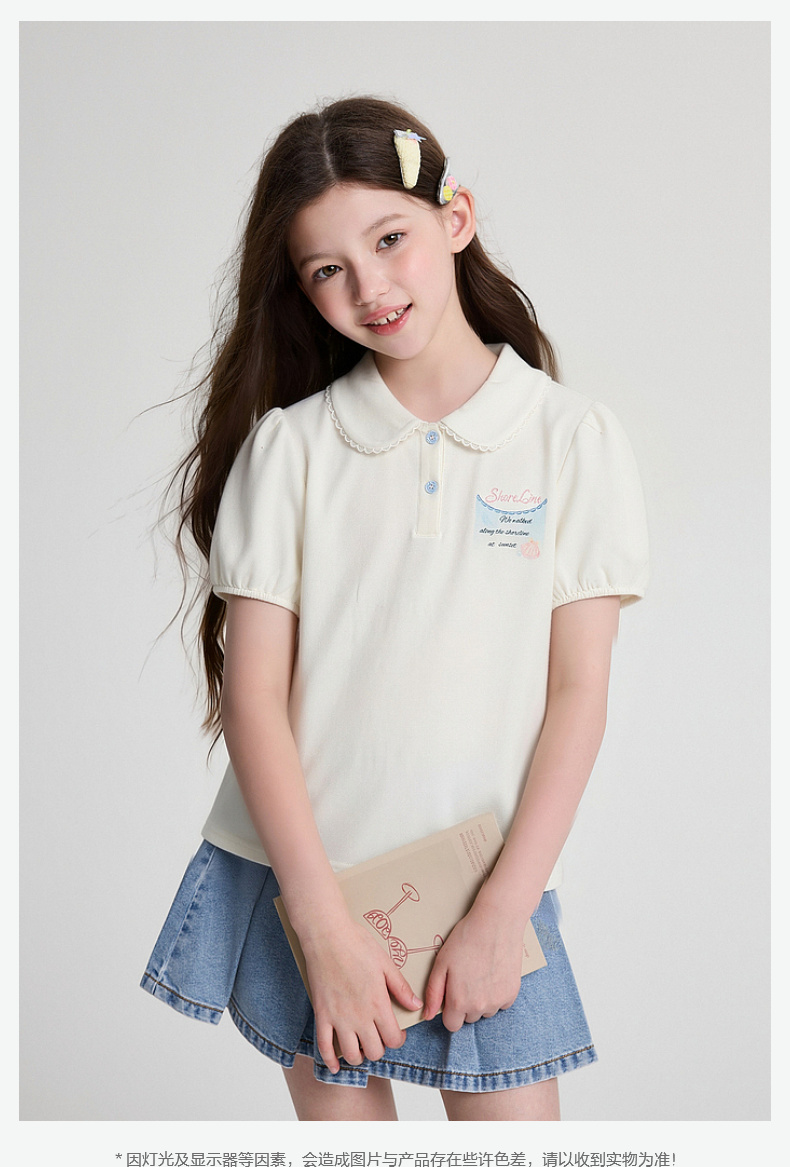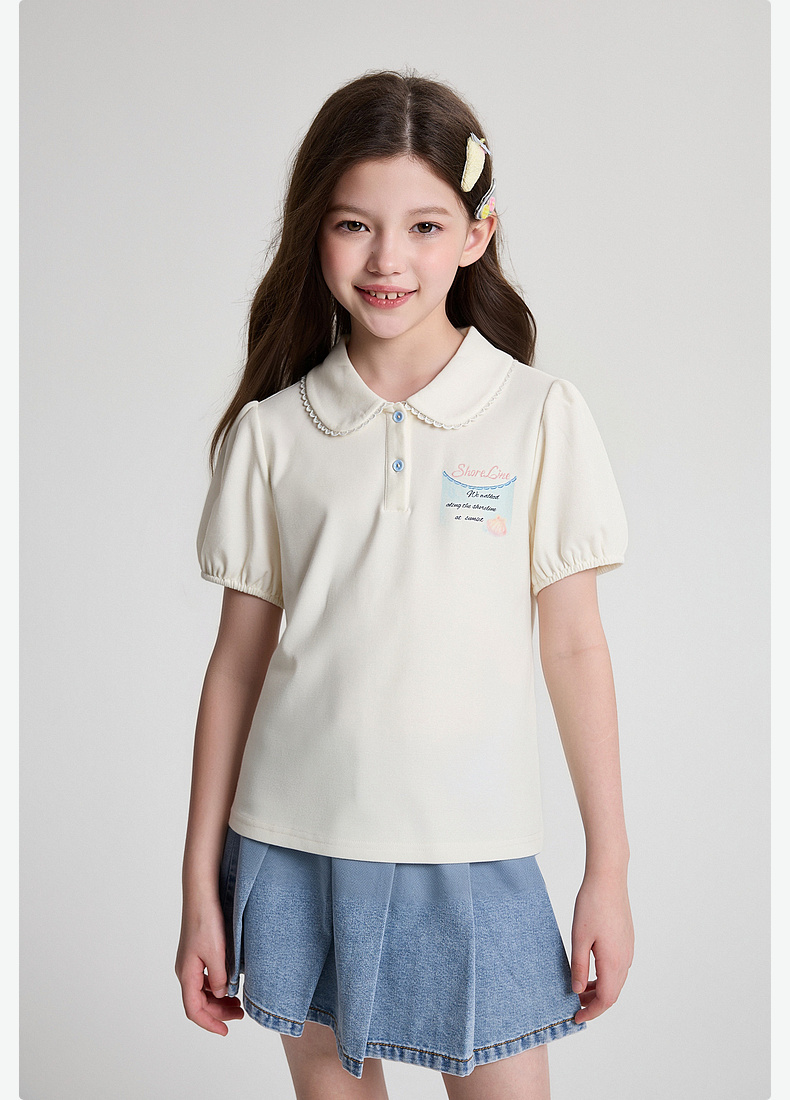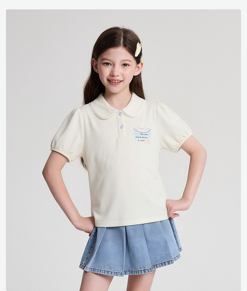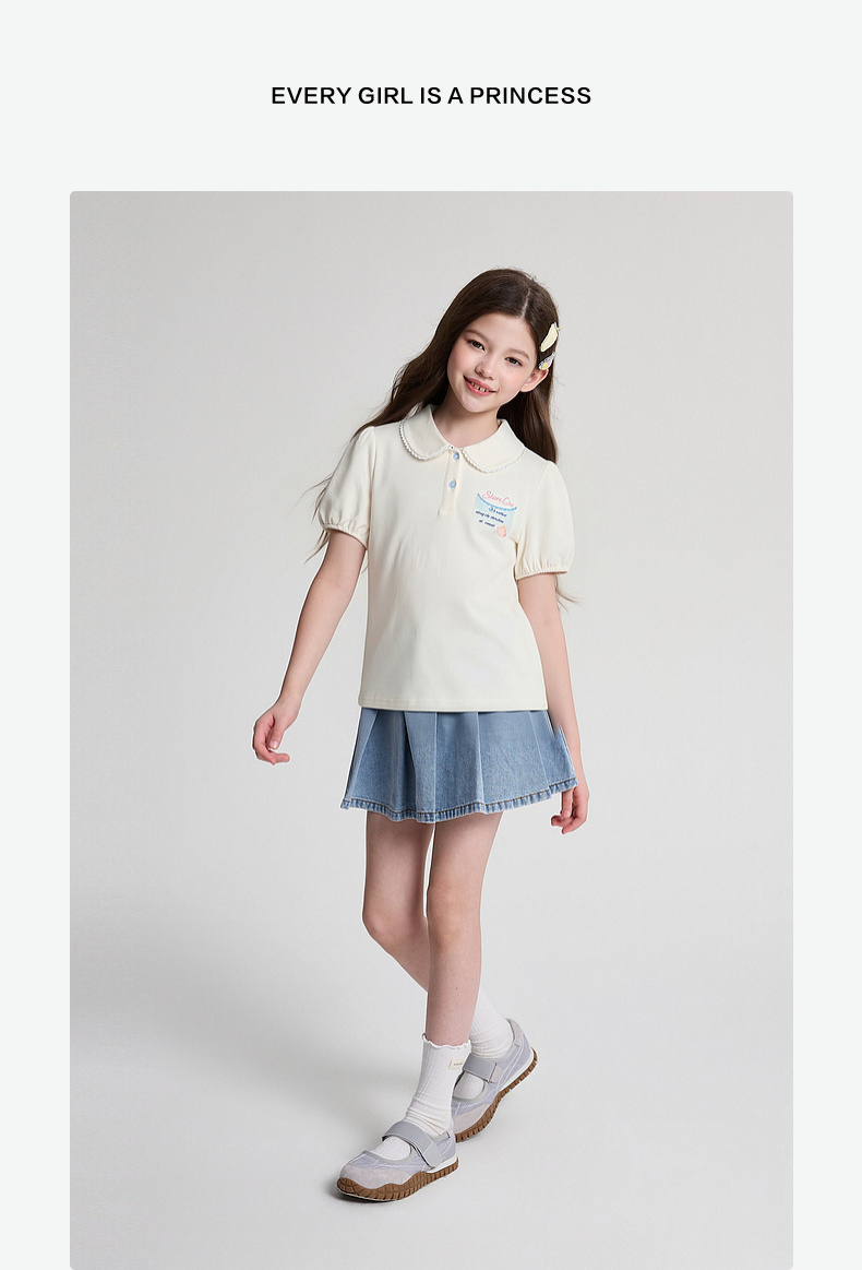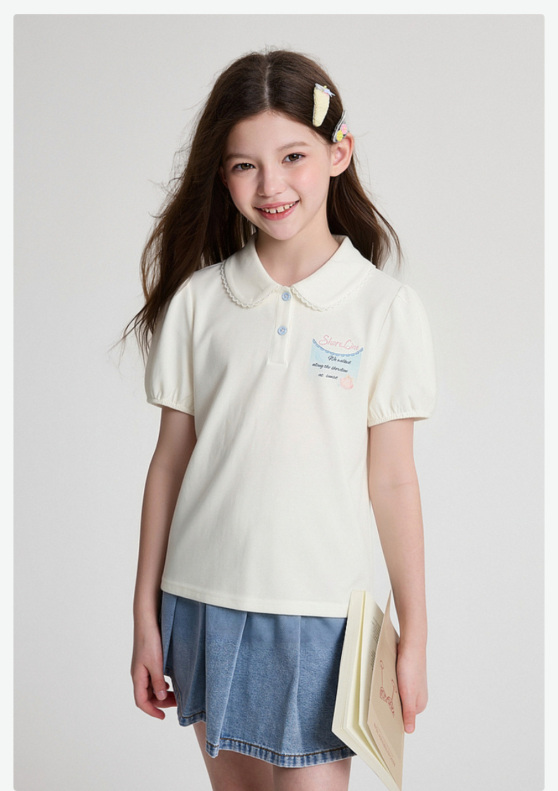 笛莎Deesha 2026年夏季新款中童女童翻领T恤T恤