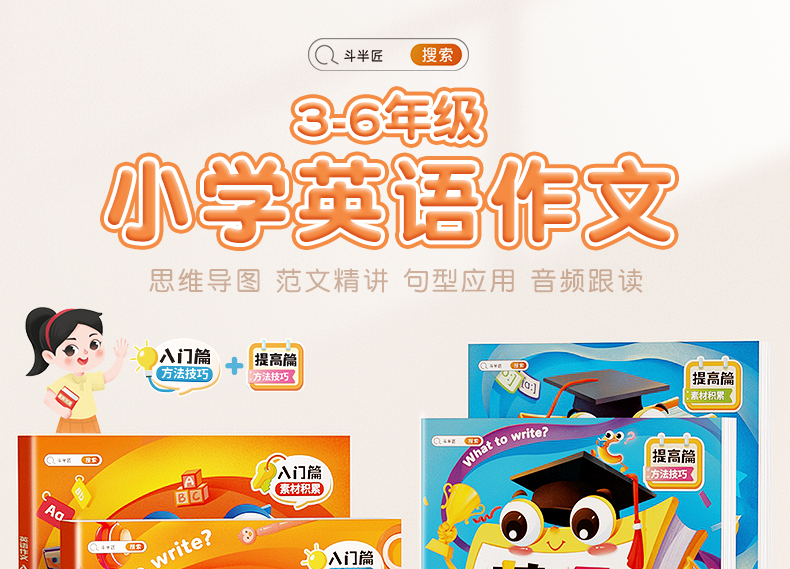 【斗半匠】小学生英语作文素材积累方法技巧音频辅助赠练习册