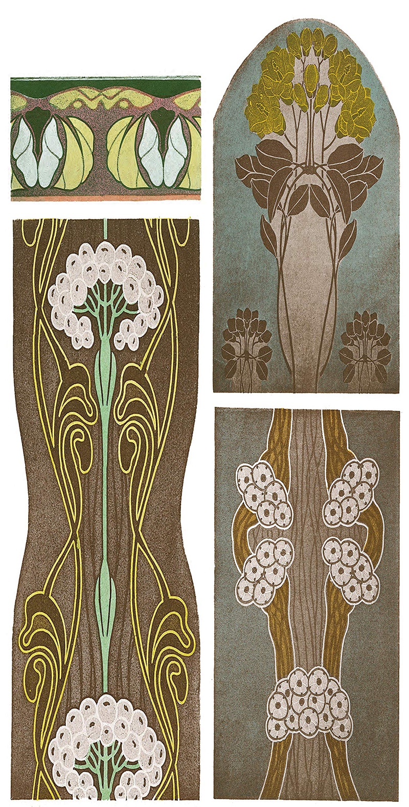 Collected from rare originals of the studio's stock portfolios, these designs have been unavailable for over a century. The highly stylized images — consisting chiefly of flowers, grapes, wreaths, and other botanical motifs — are rendered in many different shapes and sizes. Their splendid variety and versatility form an abundant source of reference and inspiration for graphic and textile designers, artists, art students, and anyone seeking striking Art Nouveau ornaments.