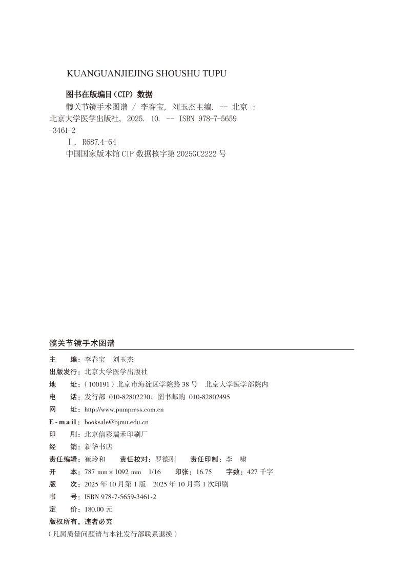 髋关节镜手术图谱 实用关节镜手术系列 李春宝 刘玉杰 主编 本书对目前髋关节镜的手术实践进行深度凝练与总结 北京大学医学出版社
