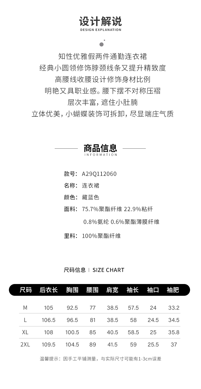 【商城同款】阿菁娜2024秋季新款知性优雅假两件连衣裙A29Q112060