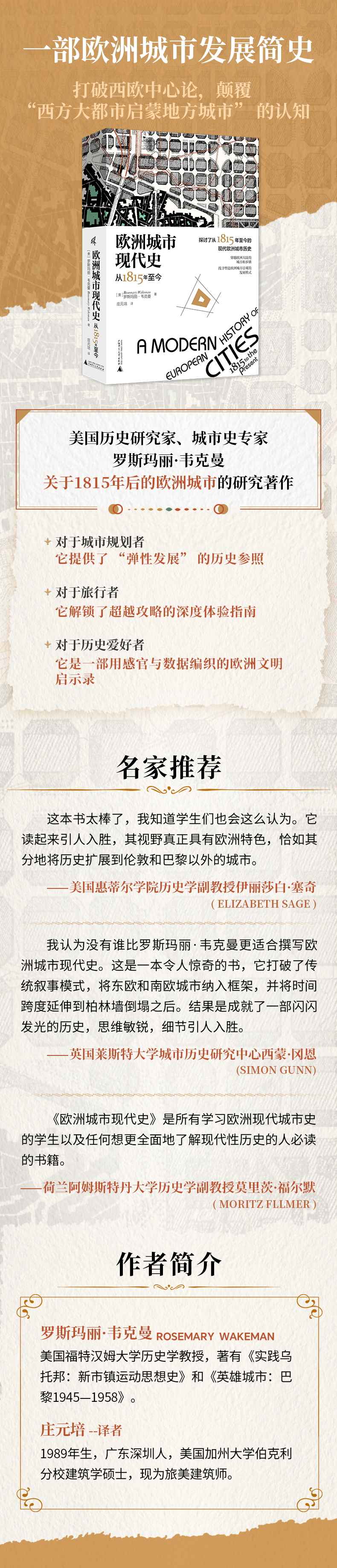 欧洲城市现代史:从1815年至今 罗斯玛丽·韦克曼/著 欧洲城市 历史 现代 帝国兴衰 城市史 城市建设 城市选址 城市平面图 广西师范大学出版社