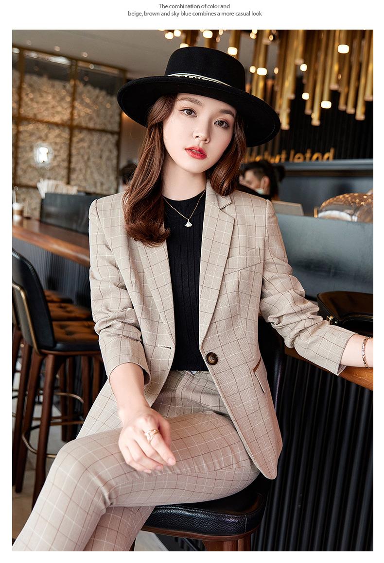 娜璐多 格子西装套装女时尚潮流2023年早秋新款设计感小众休闲西服两件套