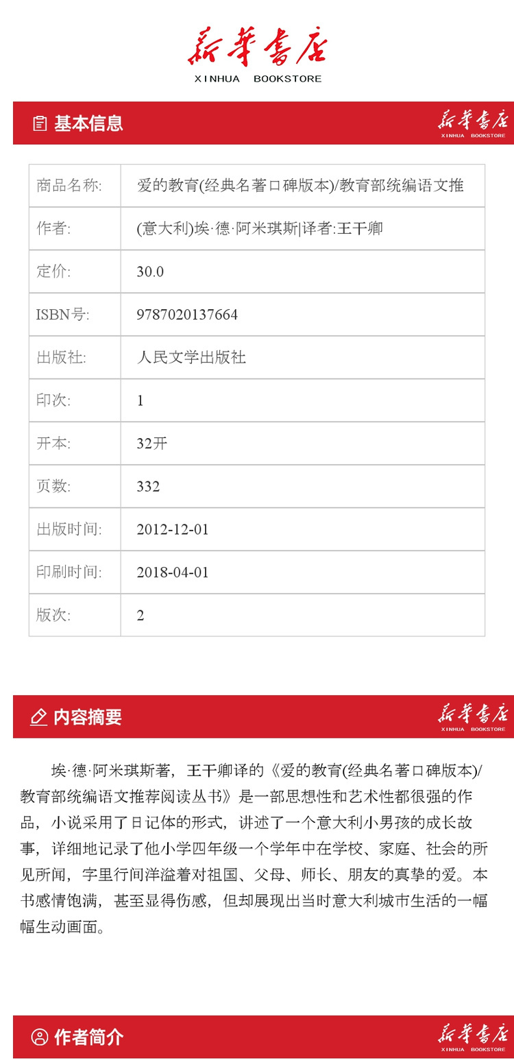 爱的教育 经典名著口碑版本 语文阅读推荐丛书 青少年完整版无删减原著正版 小学中学初中课外书文学名著