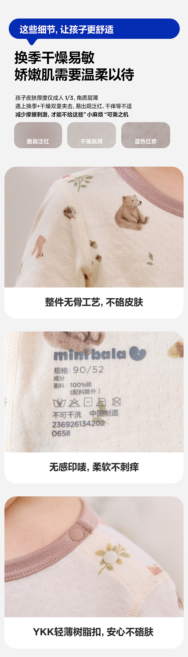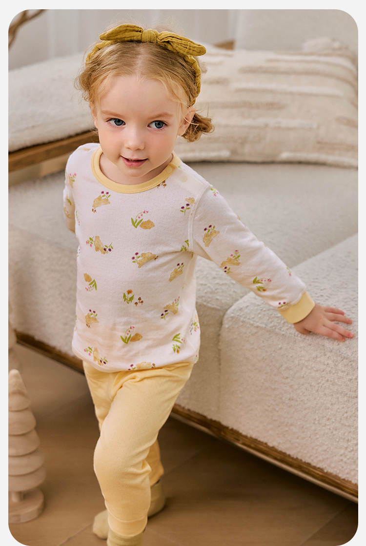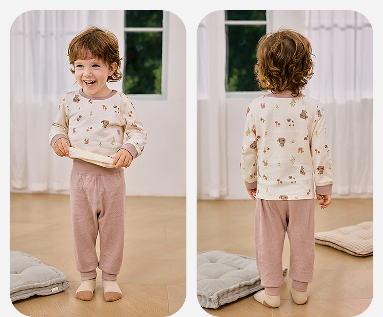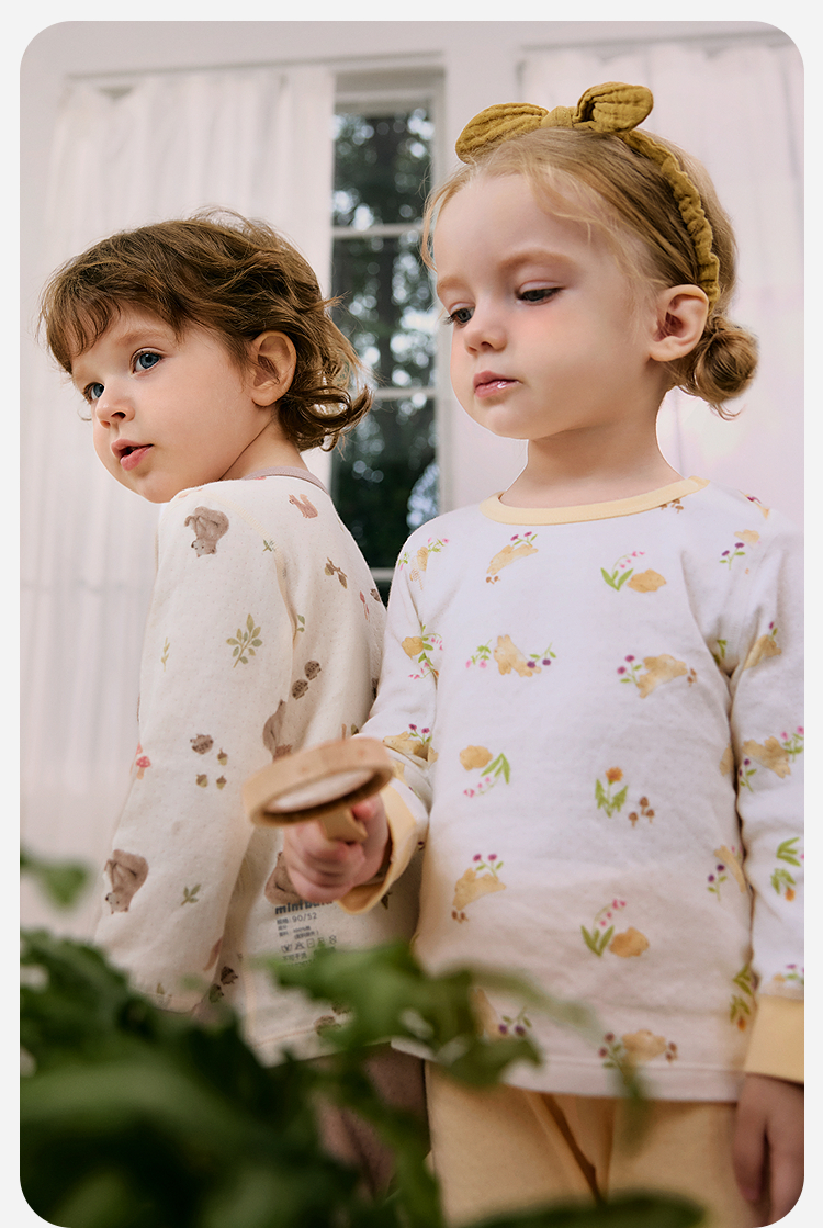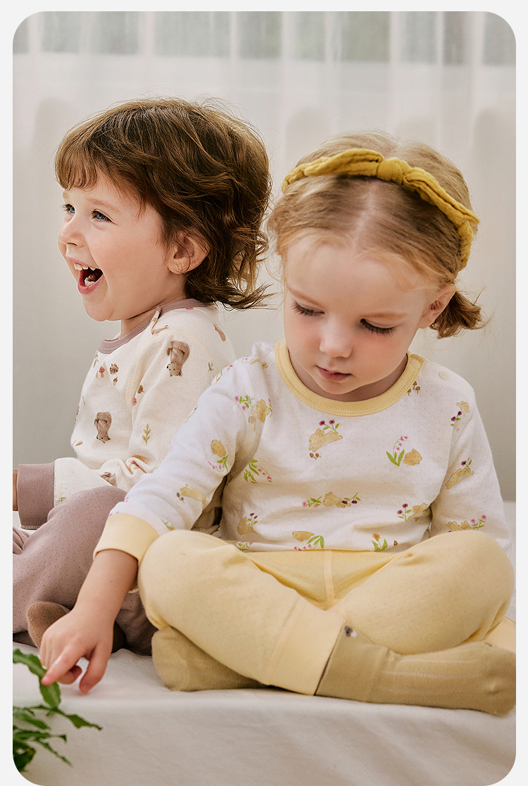 迷你巴拉儿童内衣套装男女童宝宝高腰护肚秋衣秋裤亲肤透气睡衣裤