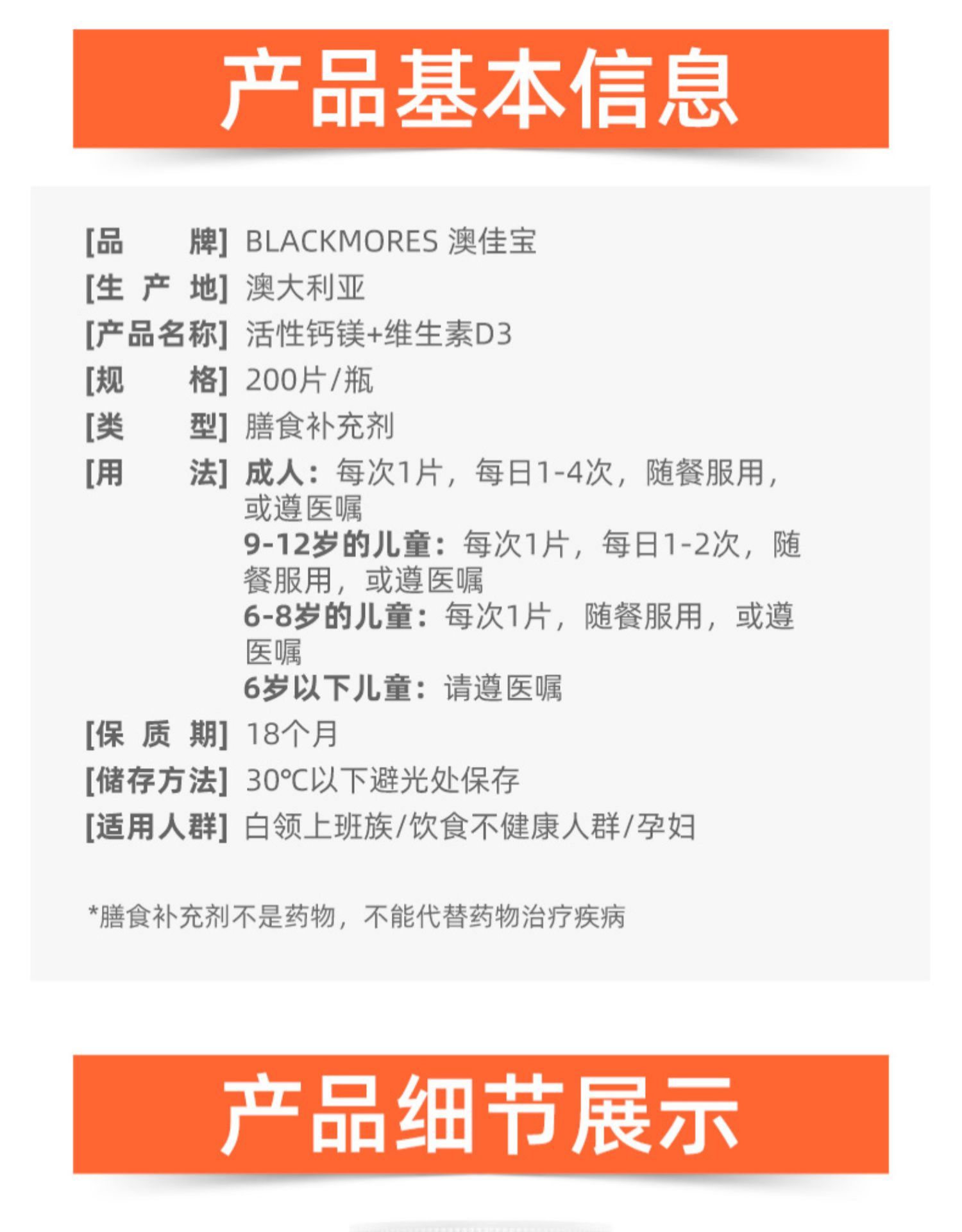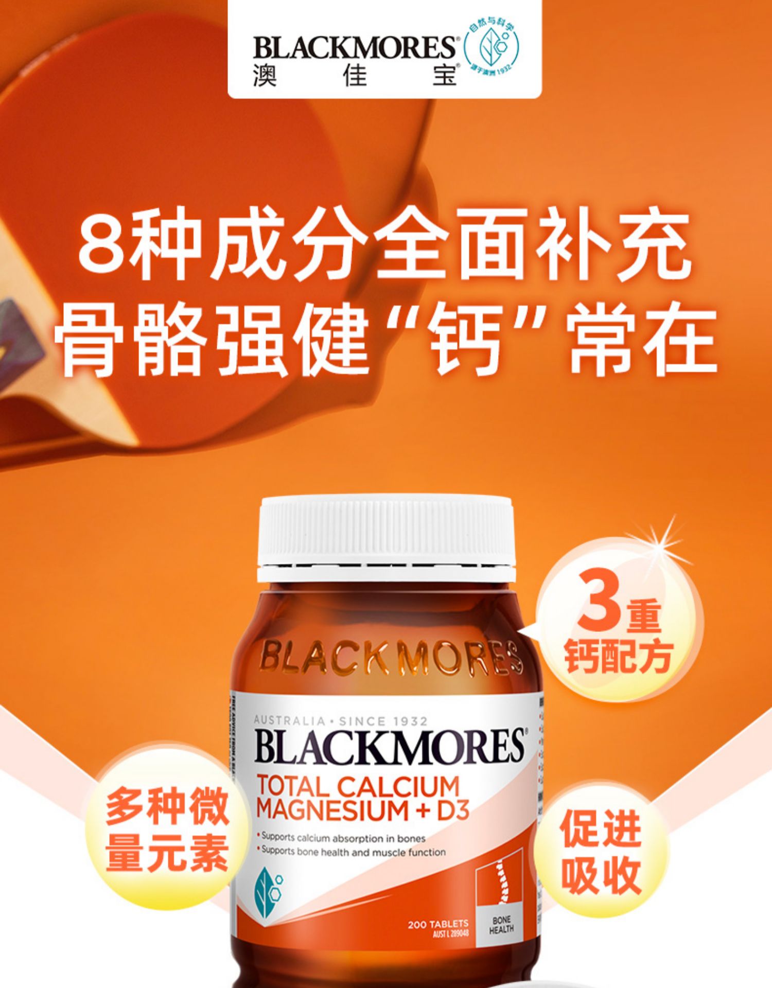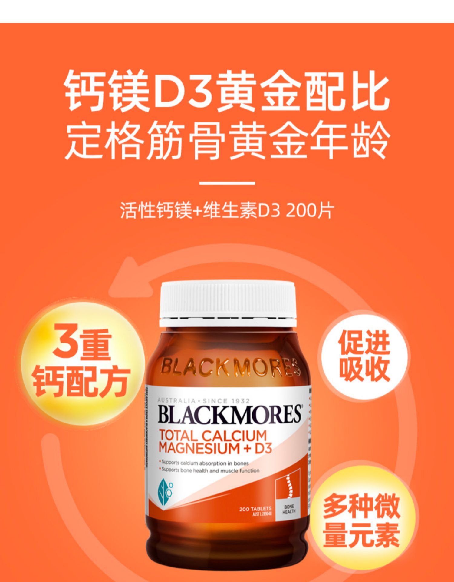 【保税仓】Blackmores澳佳宝活性钙镁片+D3片 200片