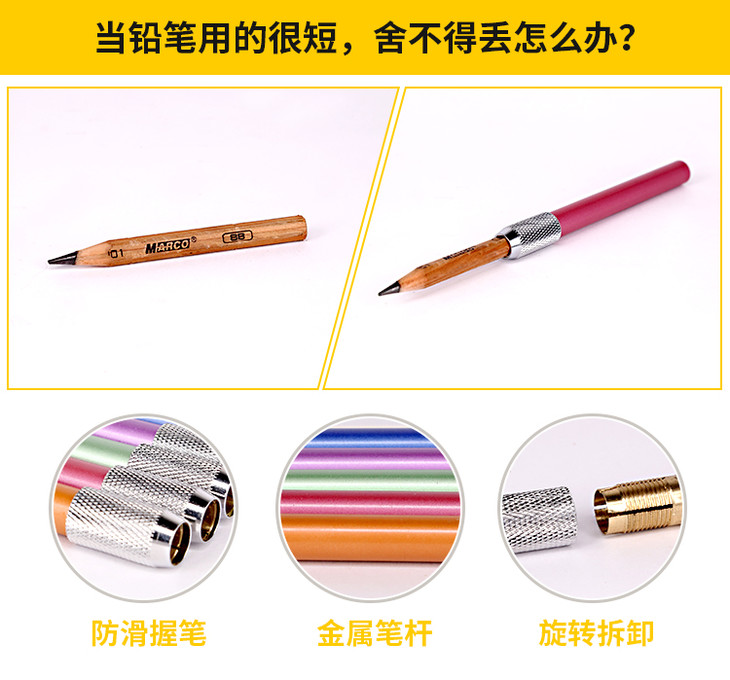 TRANSON 彩色金属素描铅笔延长器 加长器接笔器炭棒夹铅笔加长杆