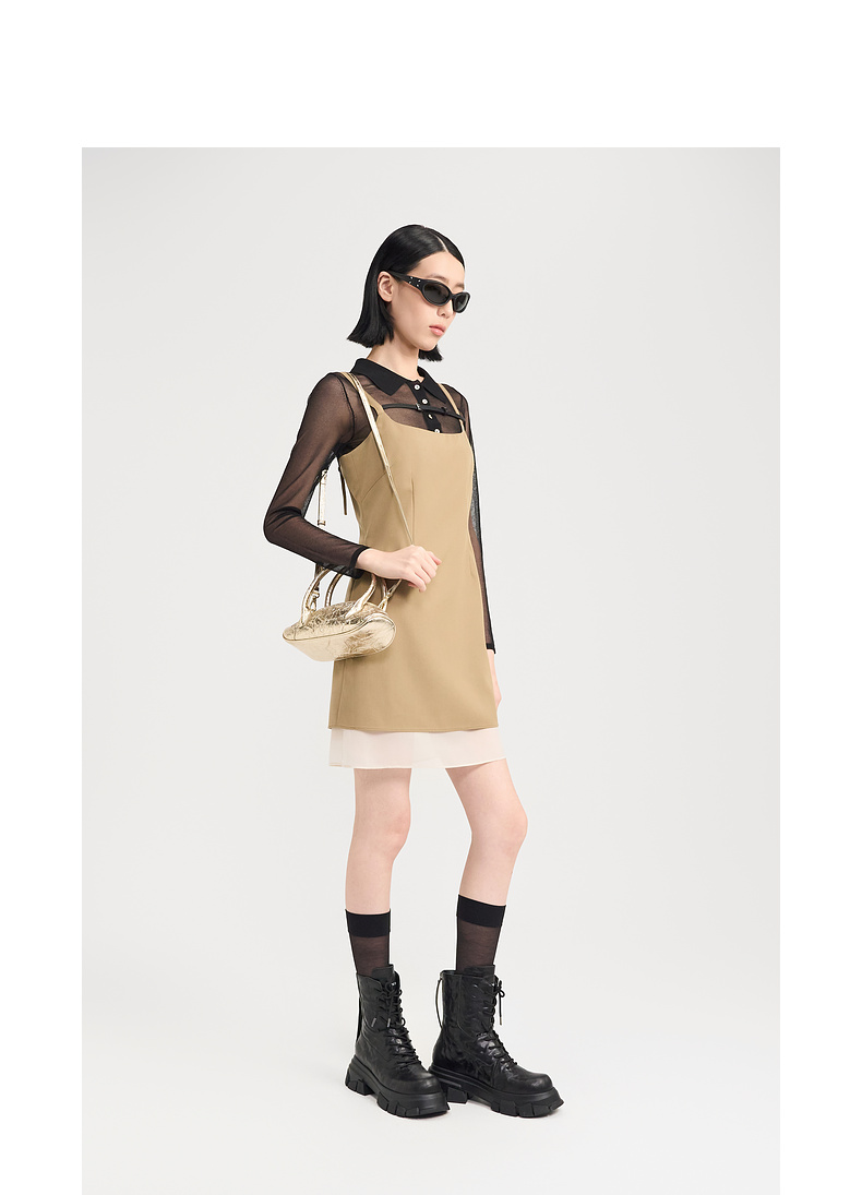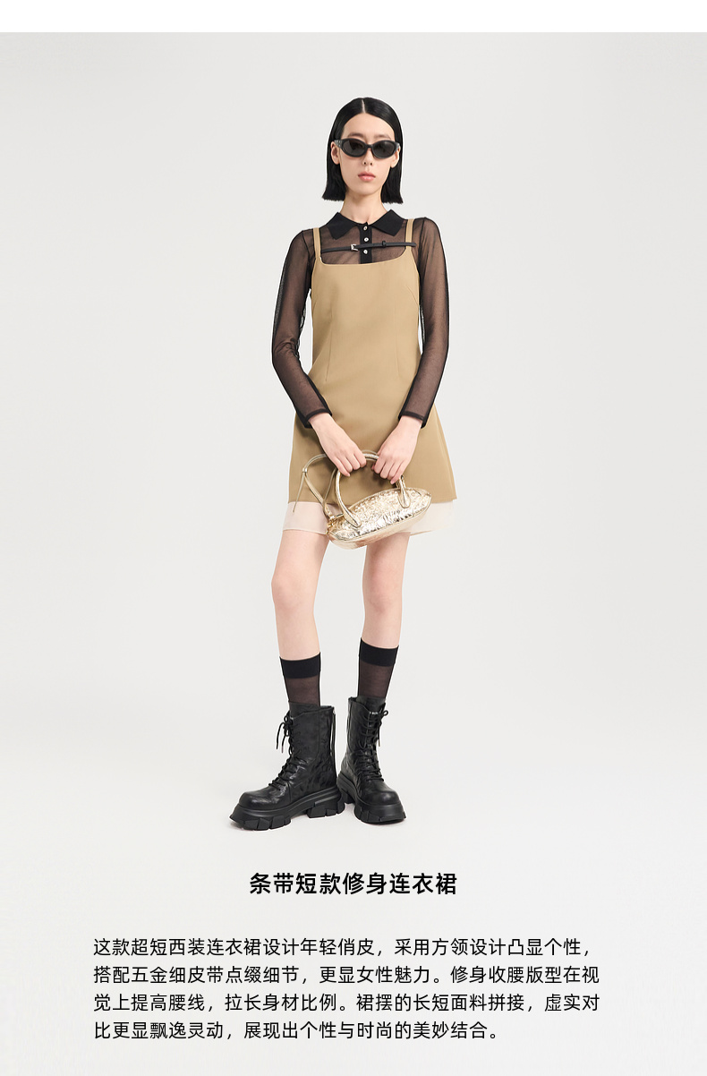 [福利价]lost in echo2024秋季新款显瘦方领吊带短款裙子修身连衣裙女