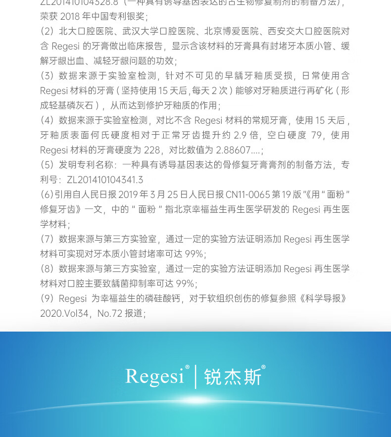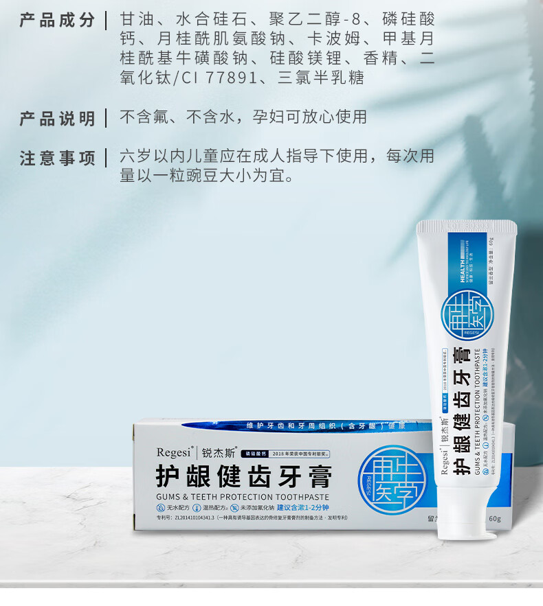 锐杰斯(Regesi)再生硅护龈健齿固齿牙膏抗敏感牙釉质修护牙龈出血敏感60g/支 1支 【体验装】