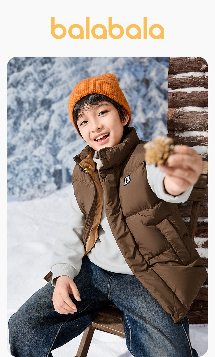 【商场同款】巴拉巴拉儿童羽绒马甲男童外套上衣新款2025冬防泼水